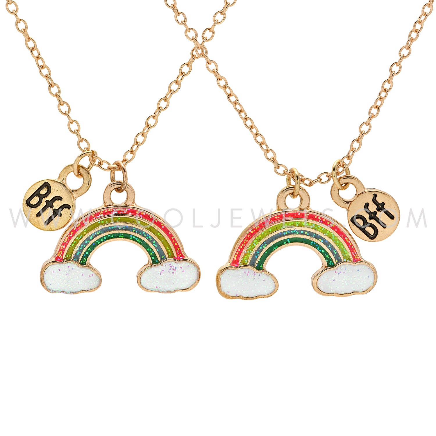 (SET OF 2) GOLD CHAIN NECKLACE WITH RAINBOW BFF PENDANTS - CARDED