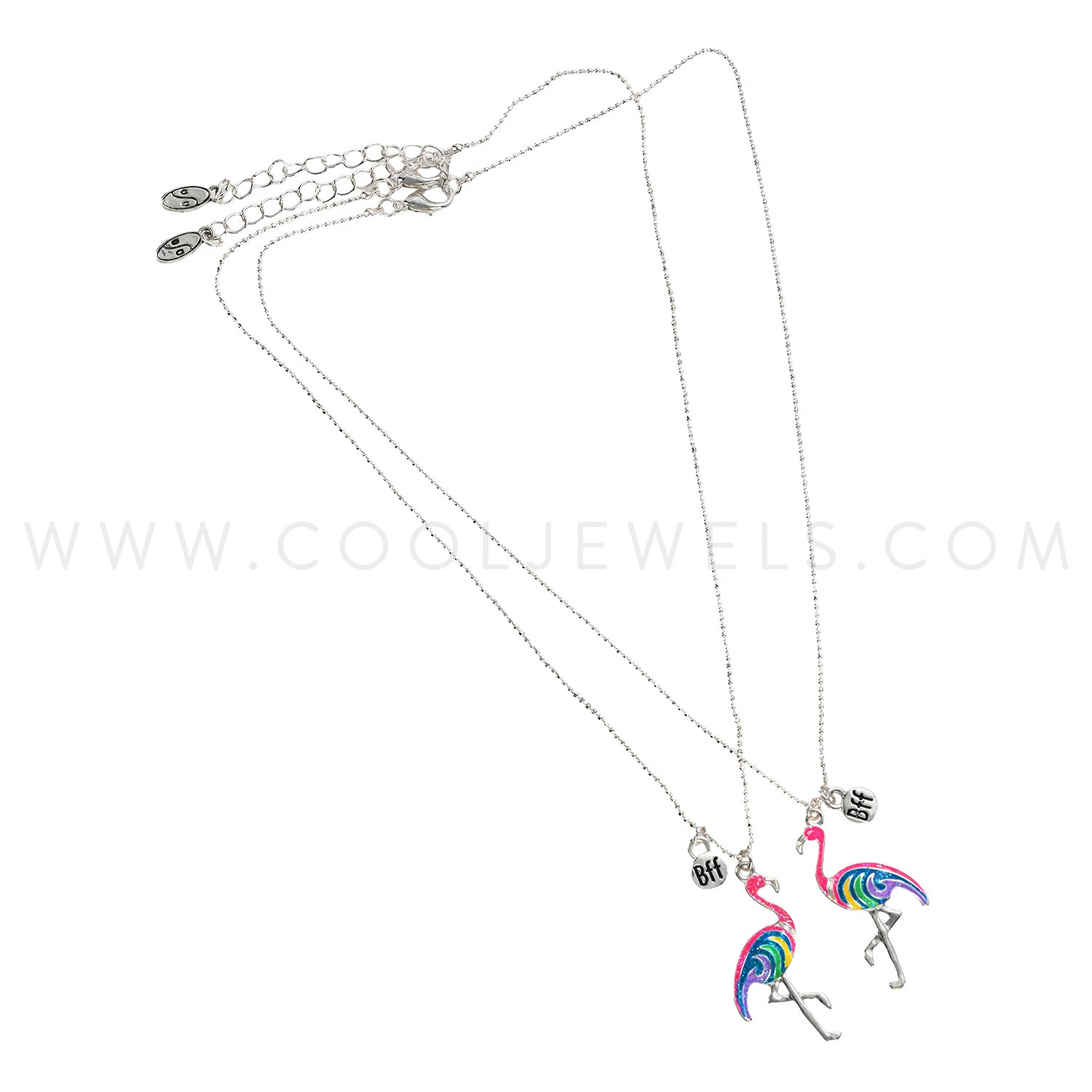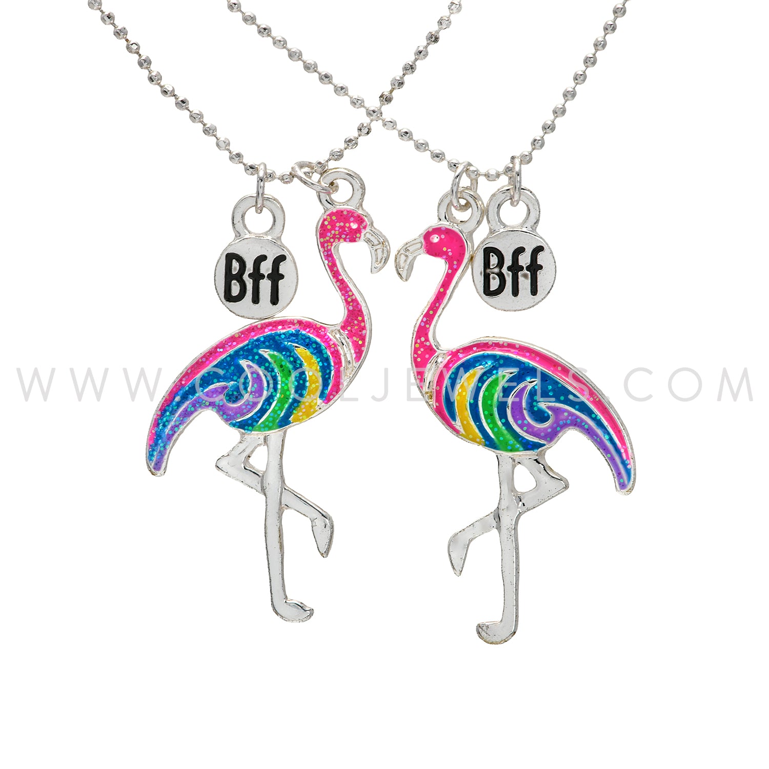 (SET OF 2) BALL CHAIN NECKLACE WITH GLITTER FLAMINGO