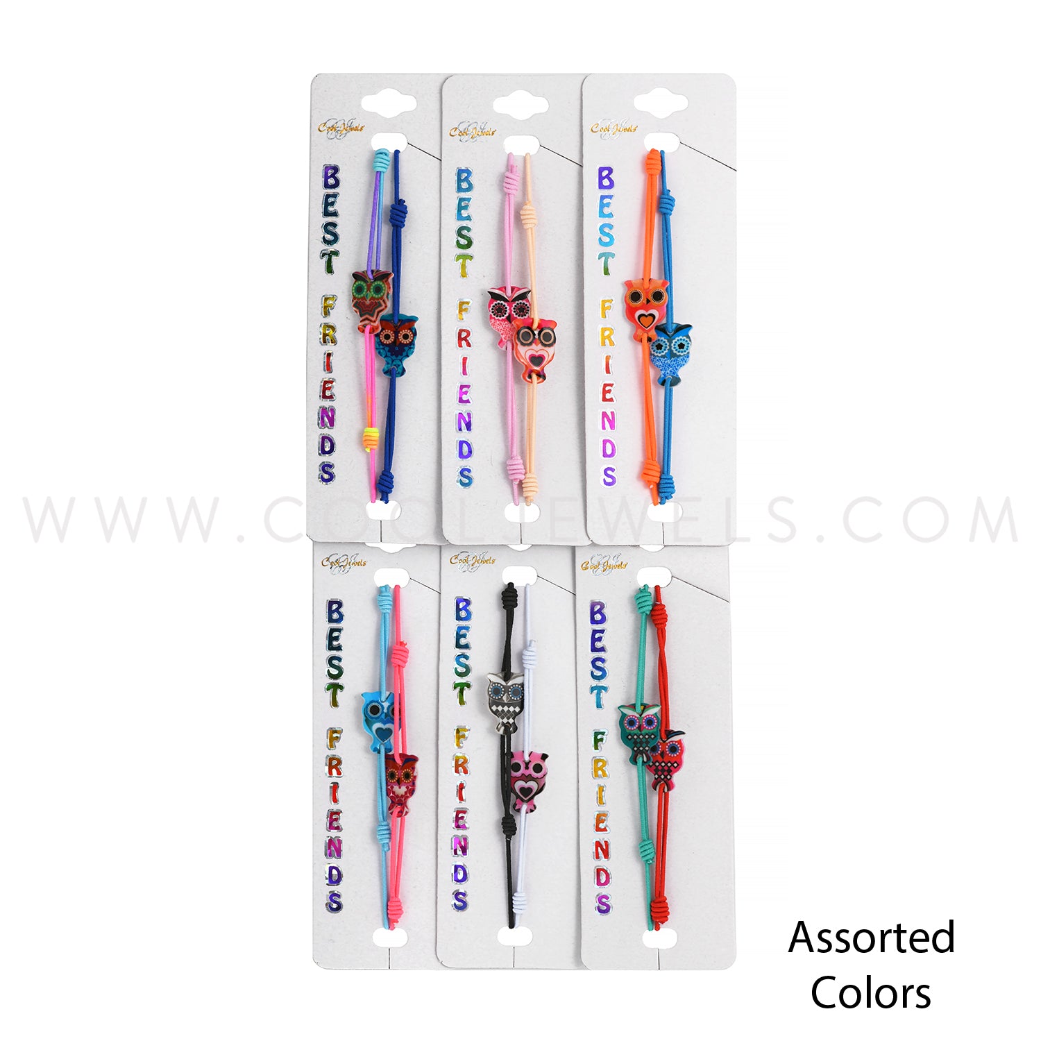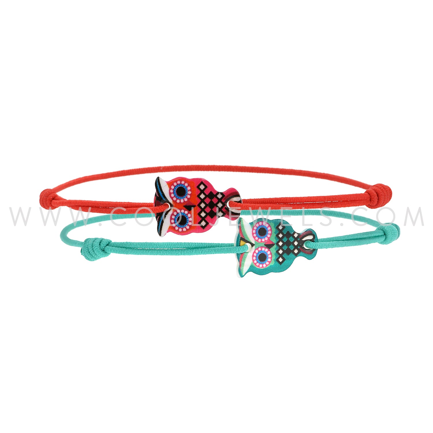 Set of 2 Elastic Adjustable Bracelets with Owl.