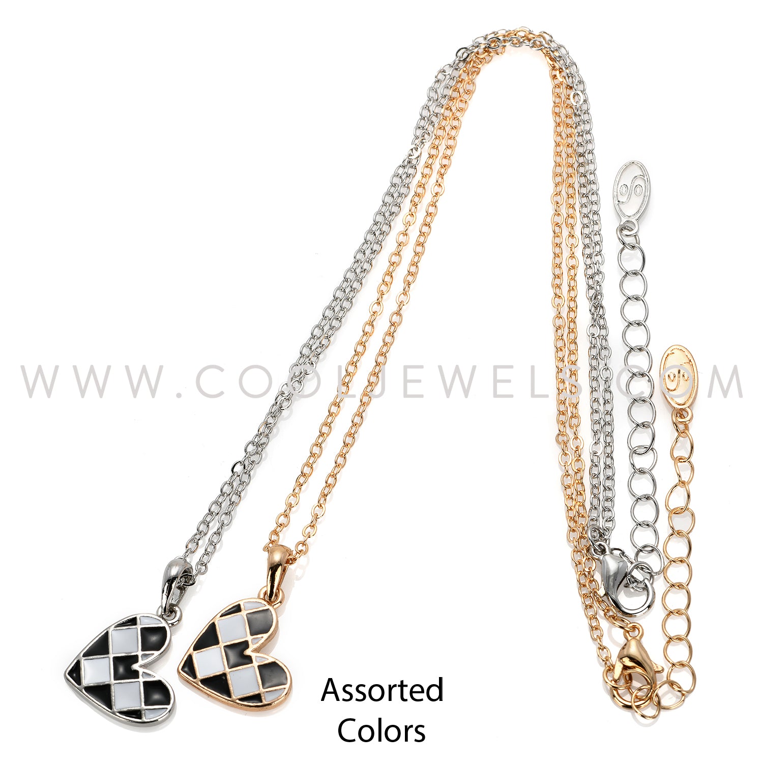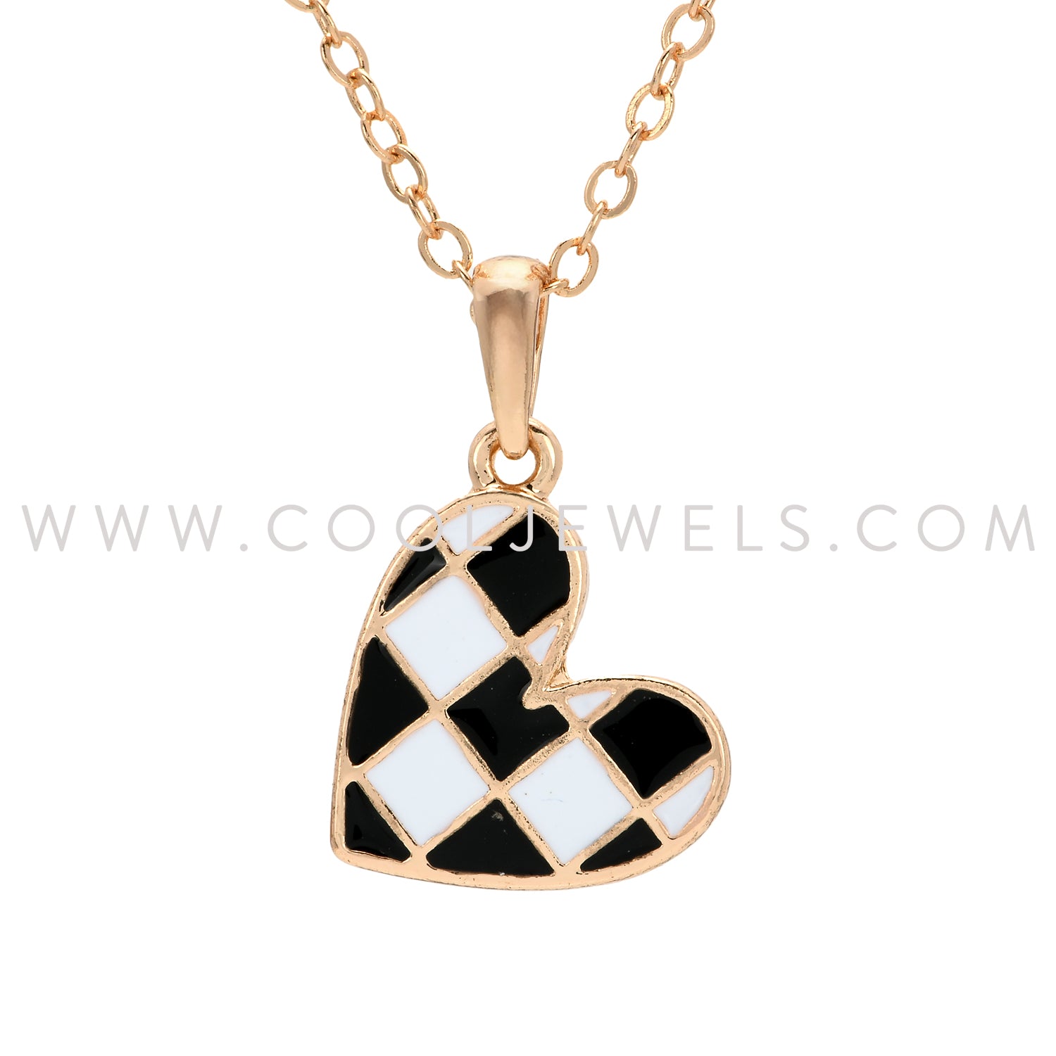 LINK CHAIN NECKLACE WITH BLACK & WHITE CHECKERED FLAG HEART PENDANT - ASSORTED