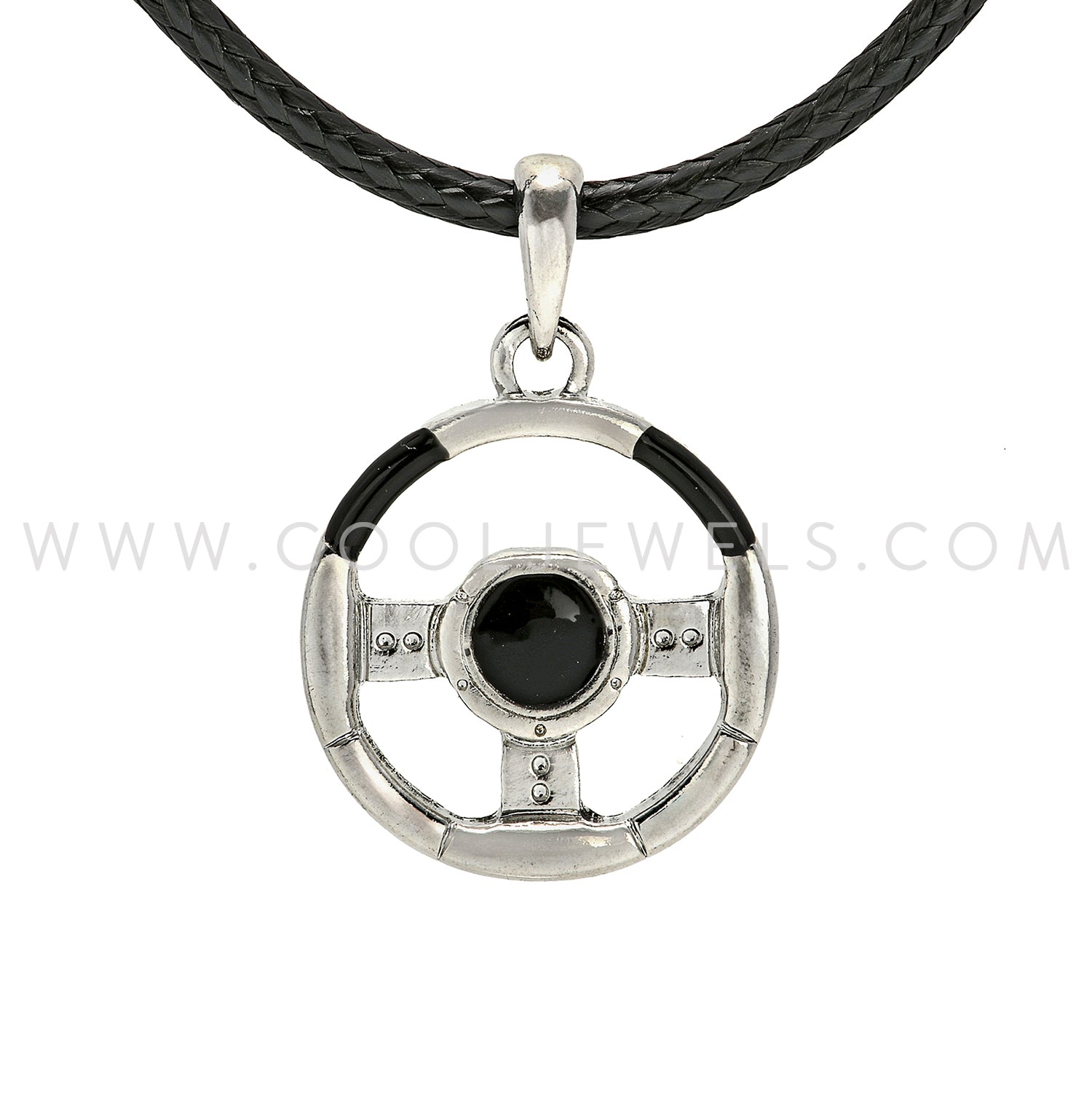 BLACK CORD NECKLACE WITH STEERING WHEEL PENDANT