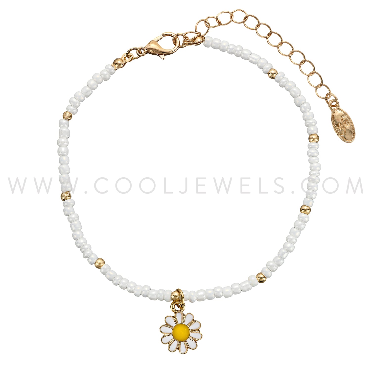 PEARL WHITE BEADED ANKLET WITH DAISY PENDANT