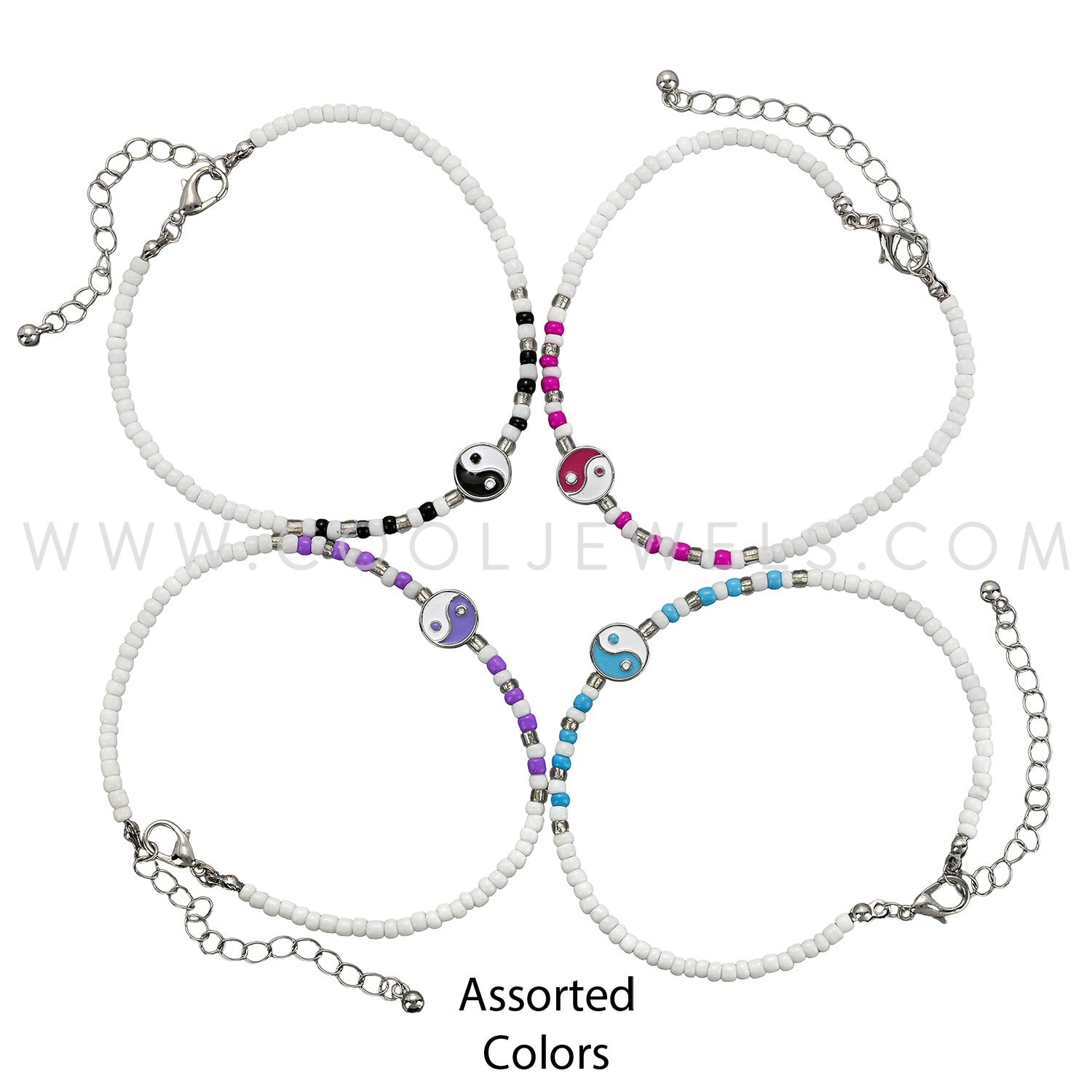 BEADED ANKLET WITH WHITE & COLORED BEADS WITH YIN YANG PENDANT - ASSORTED