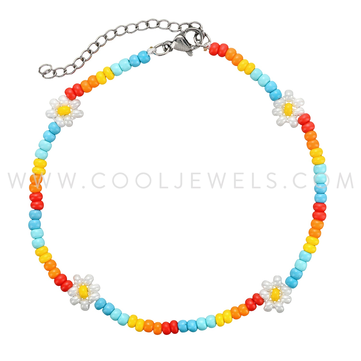 MULTICOLORED BEADED ANKLET WITH FLOWERS