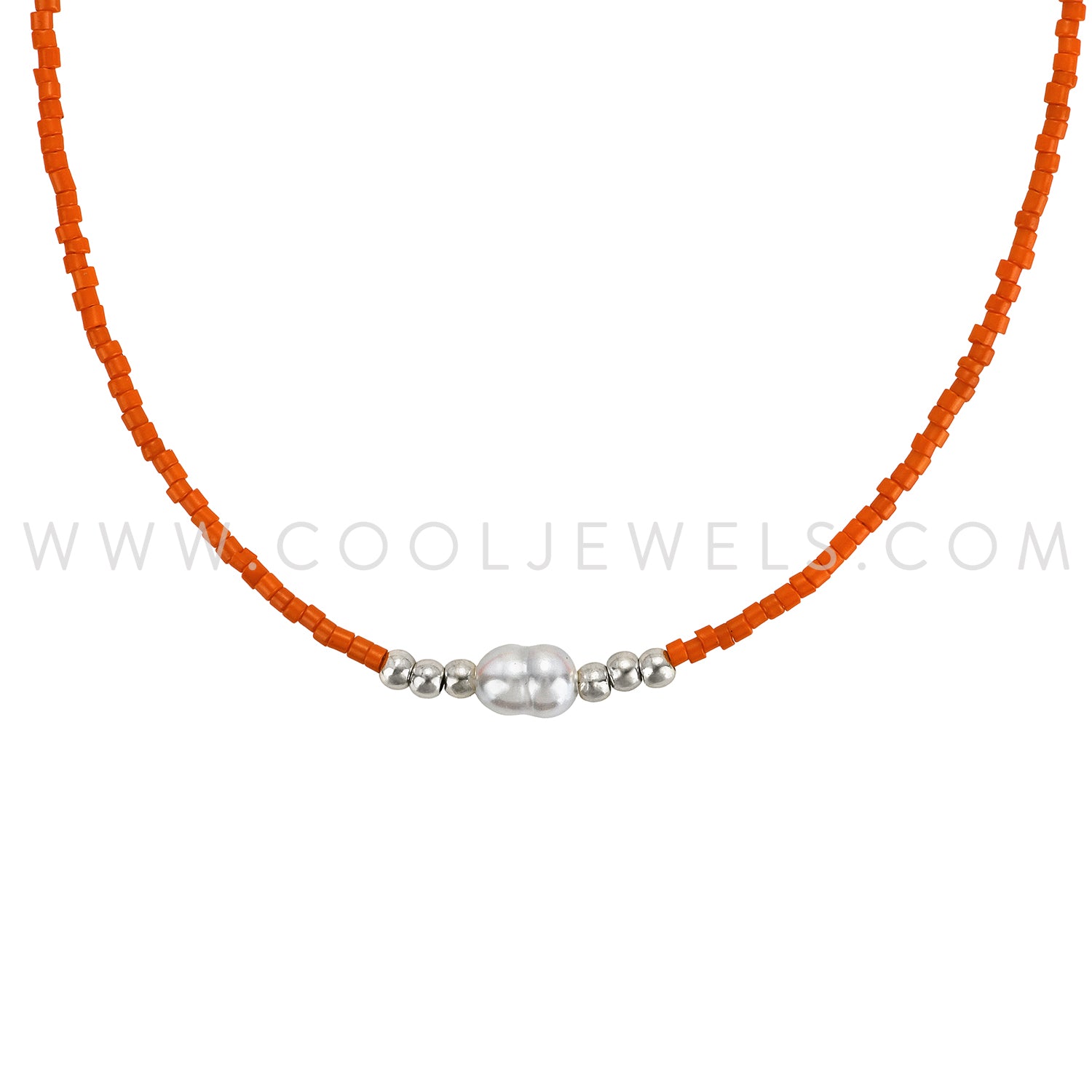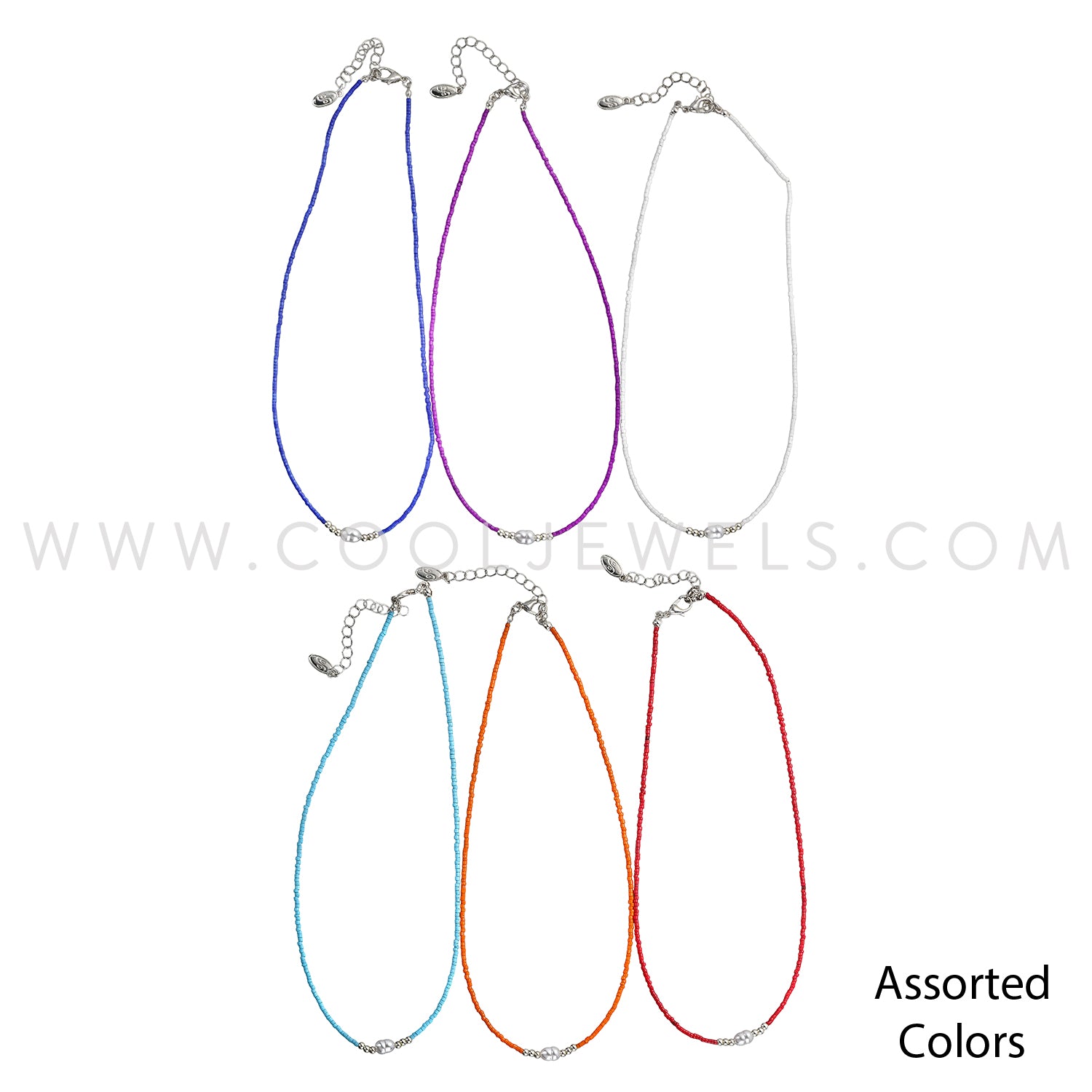 SEED BEAD NECKLACE WITH PEARL PENDANT - ASSORTED