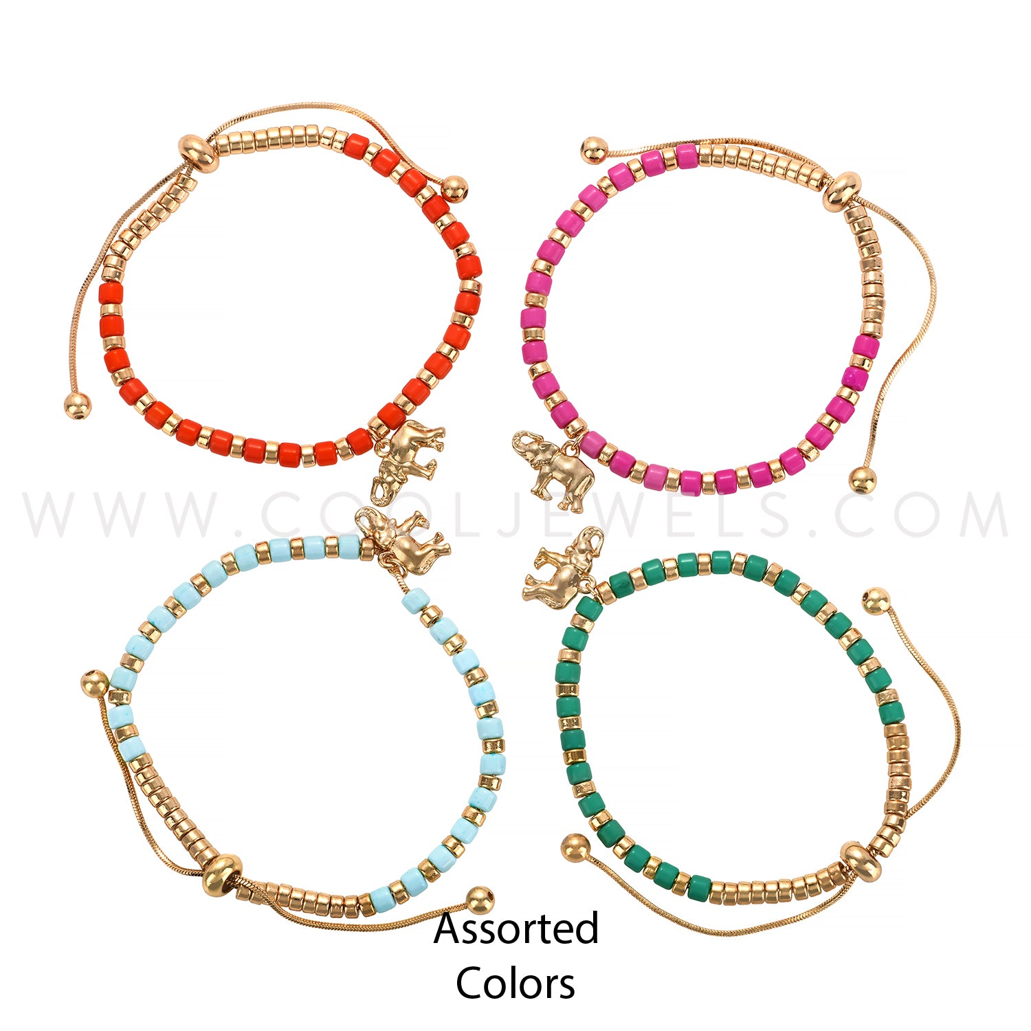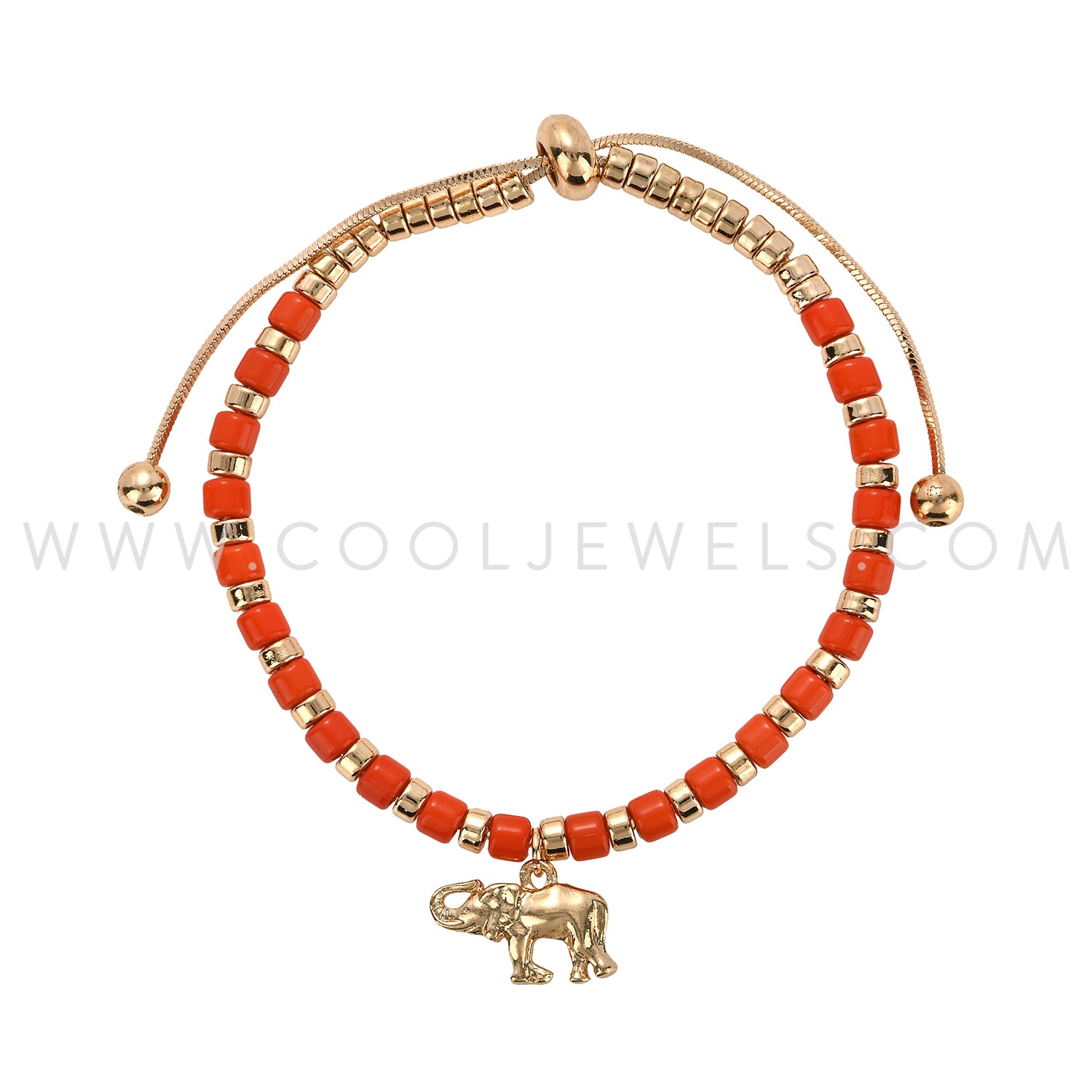 CHAIN SLIDER BRACELET WITH BEADS AND GOLD ELEPHANT PENDANT