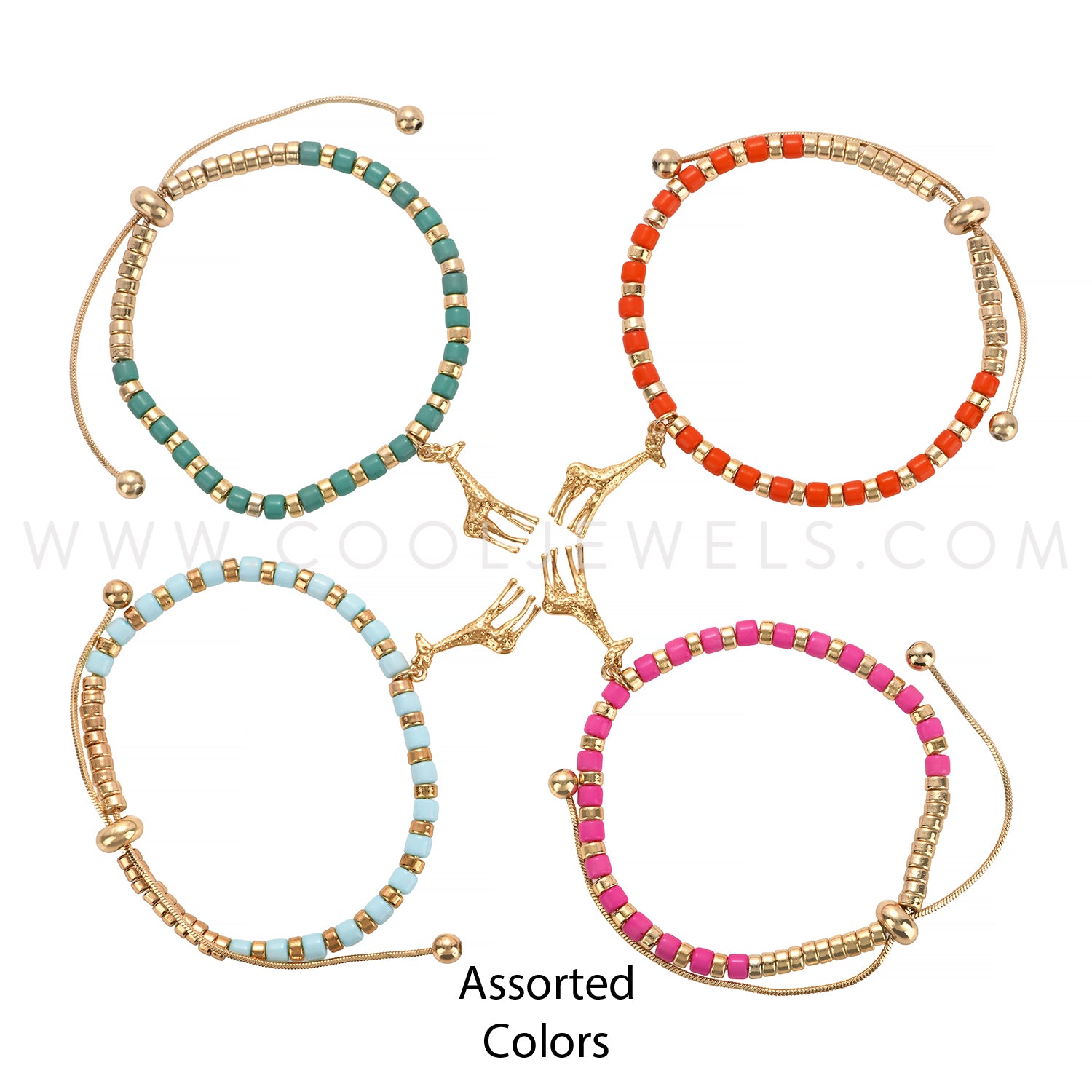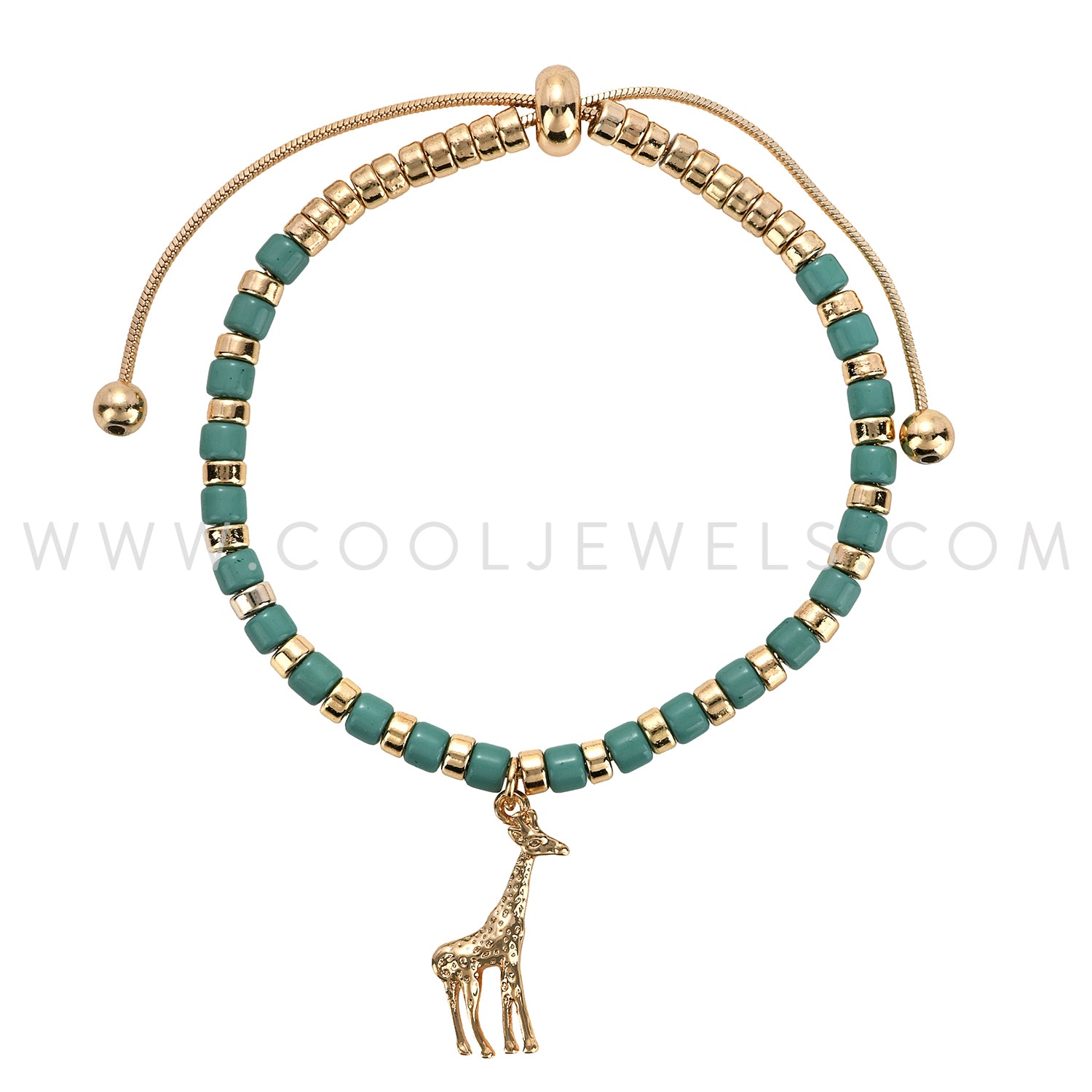 CHAIN SLIDER BRACELET WITH BEADS AND GOLD GIRAFFE PENDANT