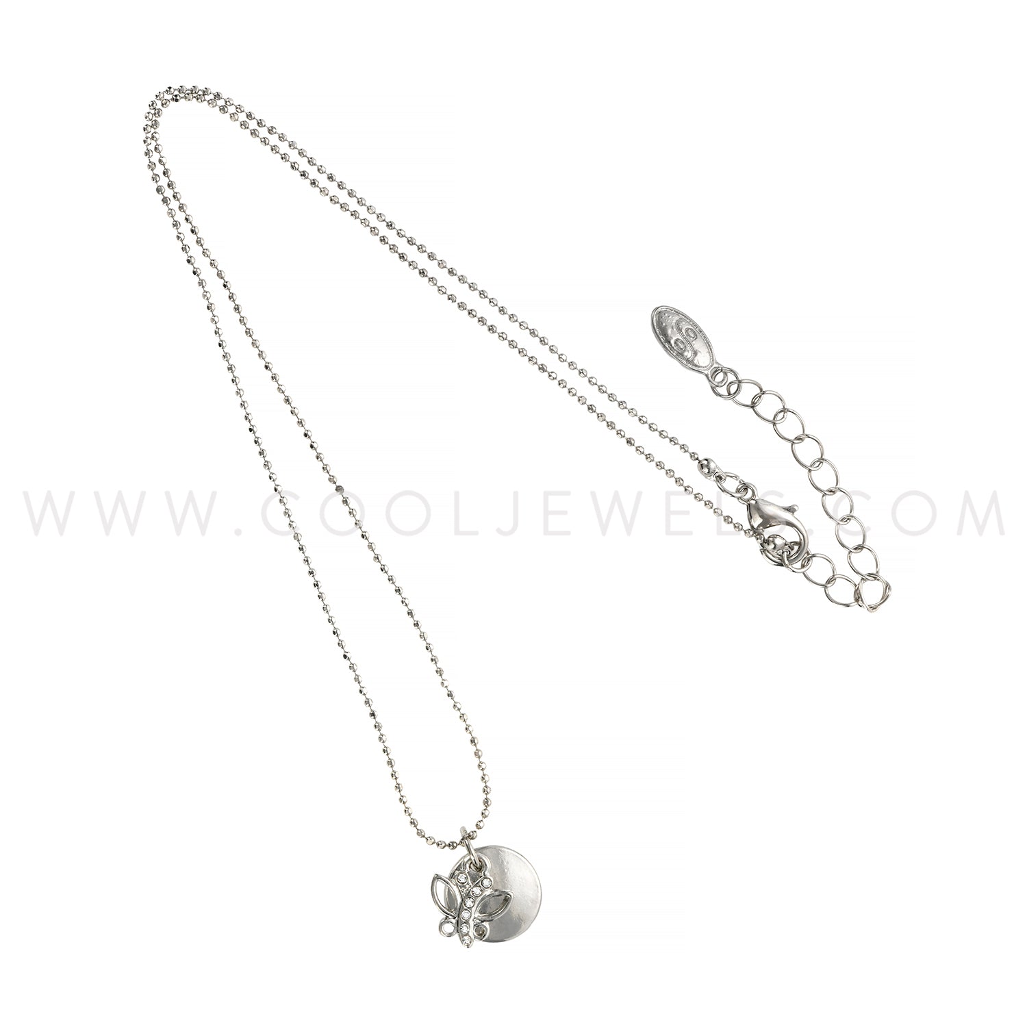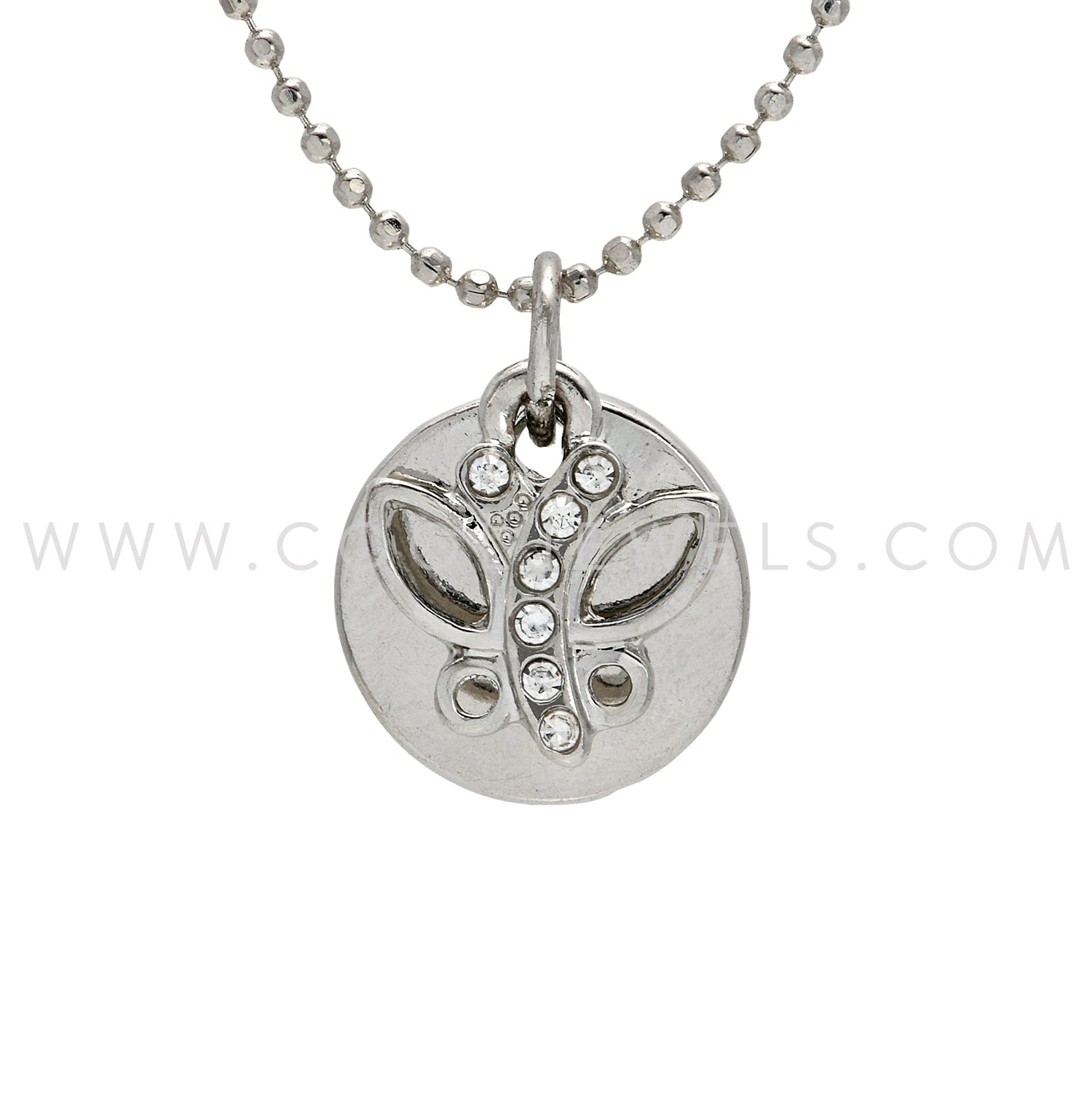 DC BALL CHAIN NECKLACE WITH RHINESTONE BUTTERFLY DISC PENDANT