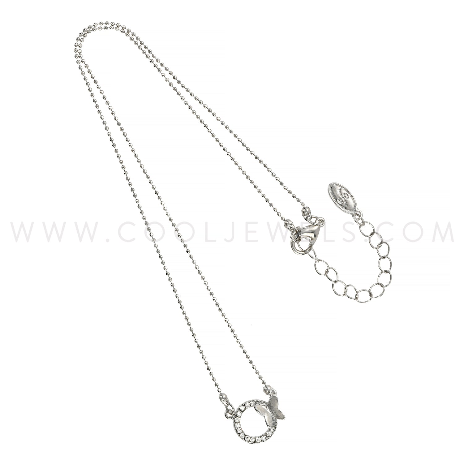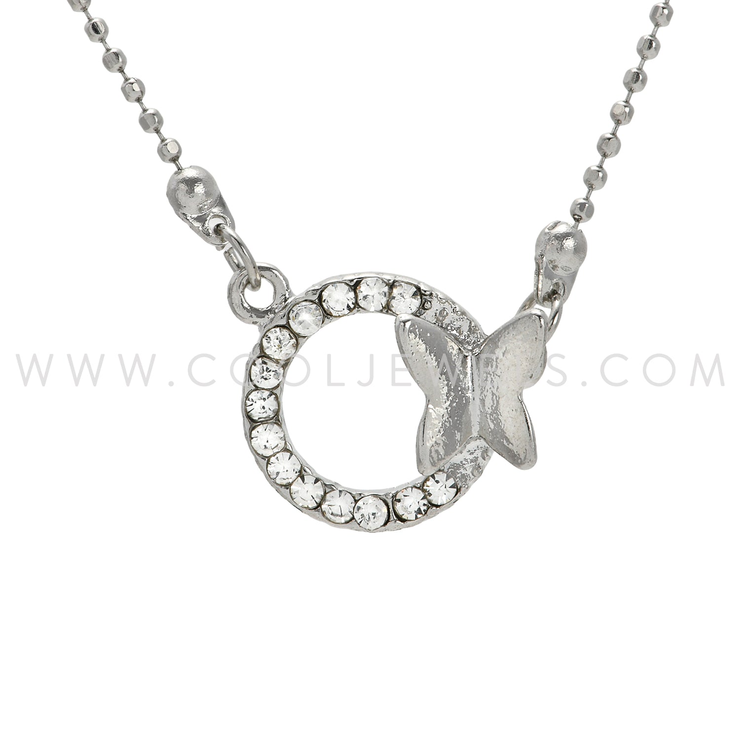 DC BALL CHAIN NECKLACE WITH RHINESTONE CIRCLE & SILVER BUTTERFLY