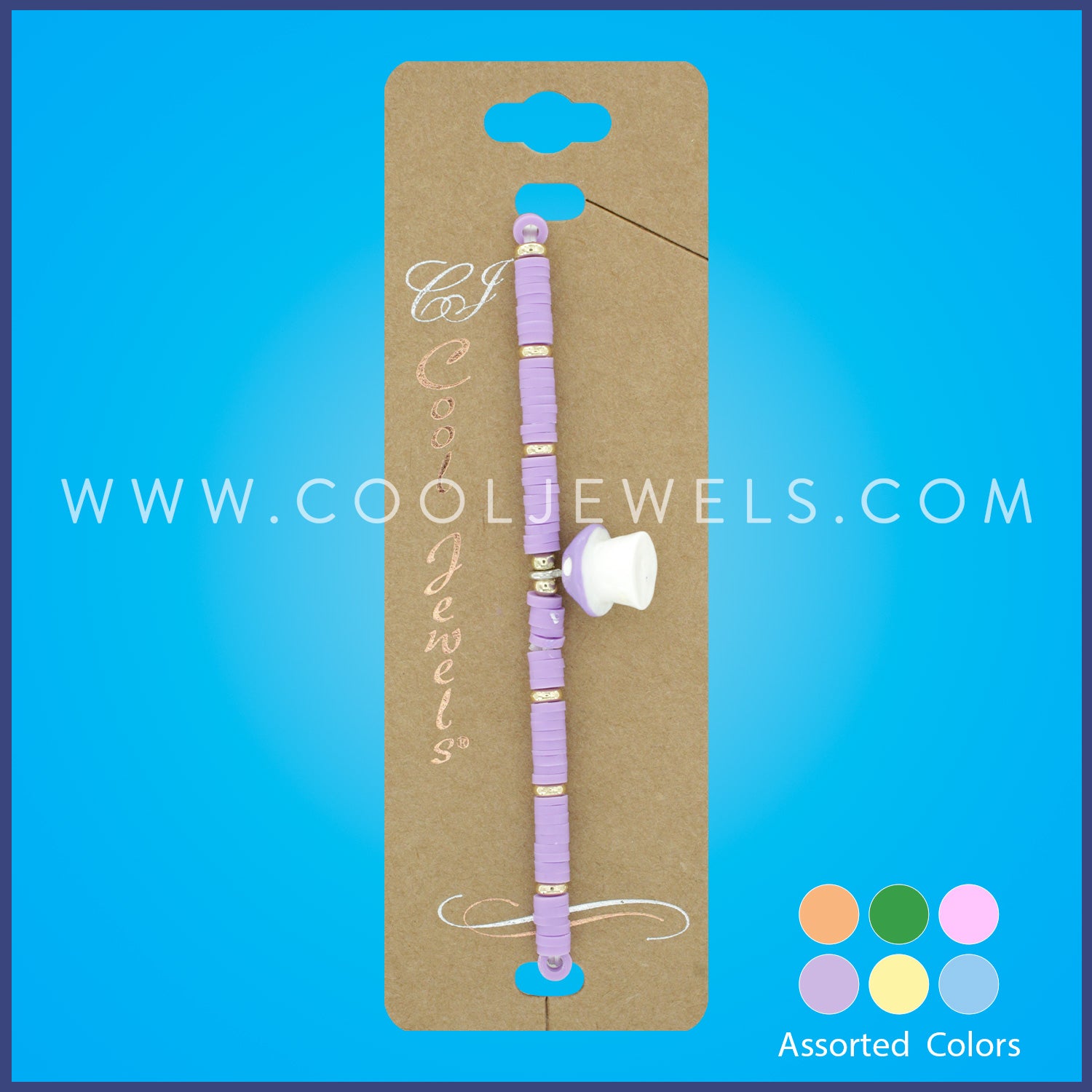 ELASTIC STRETCH BRACELET WITH FIMO & MUSHROOM PENDANT ASSORTED - CARDED