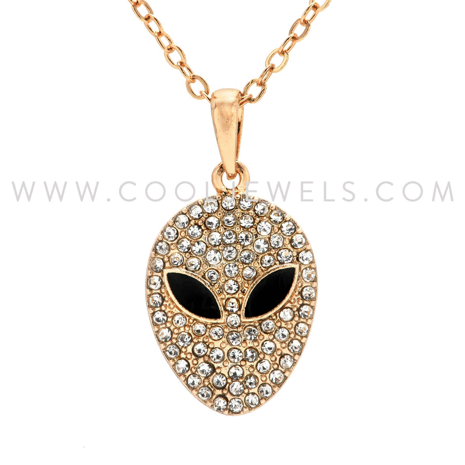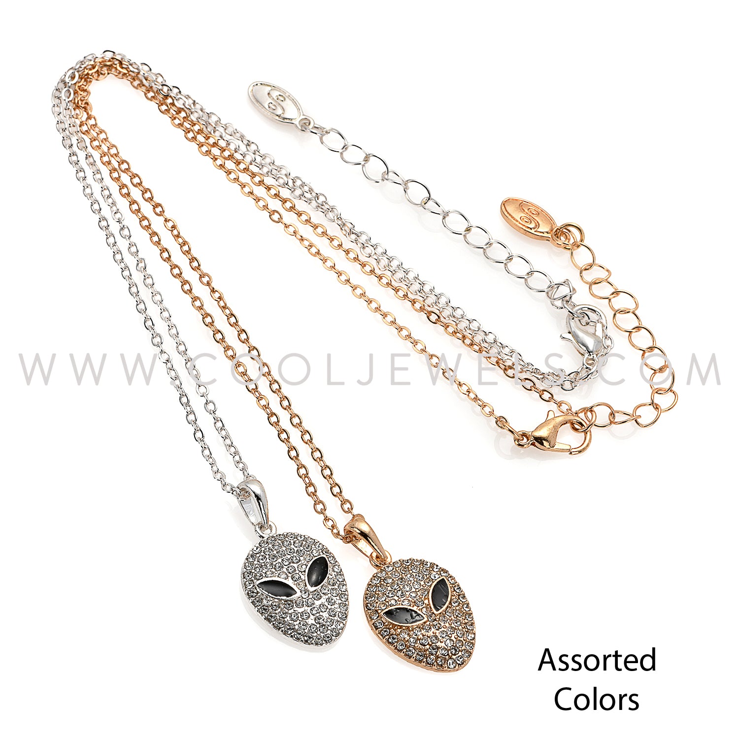 LINK CHAIN NECKLACE WITH RHINESTONE ALIEN HEAD PENDANT - ASSORTED