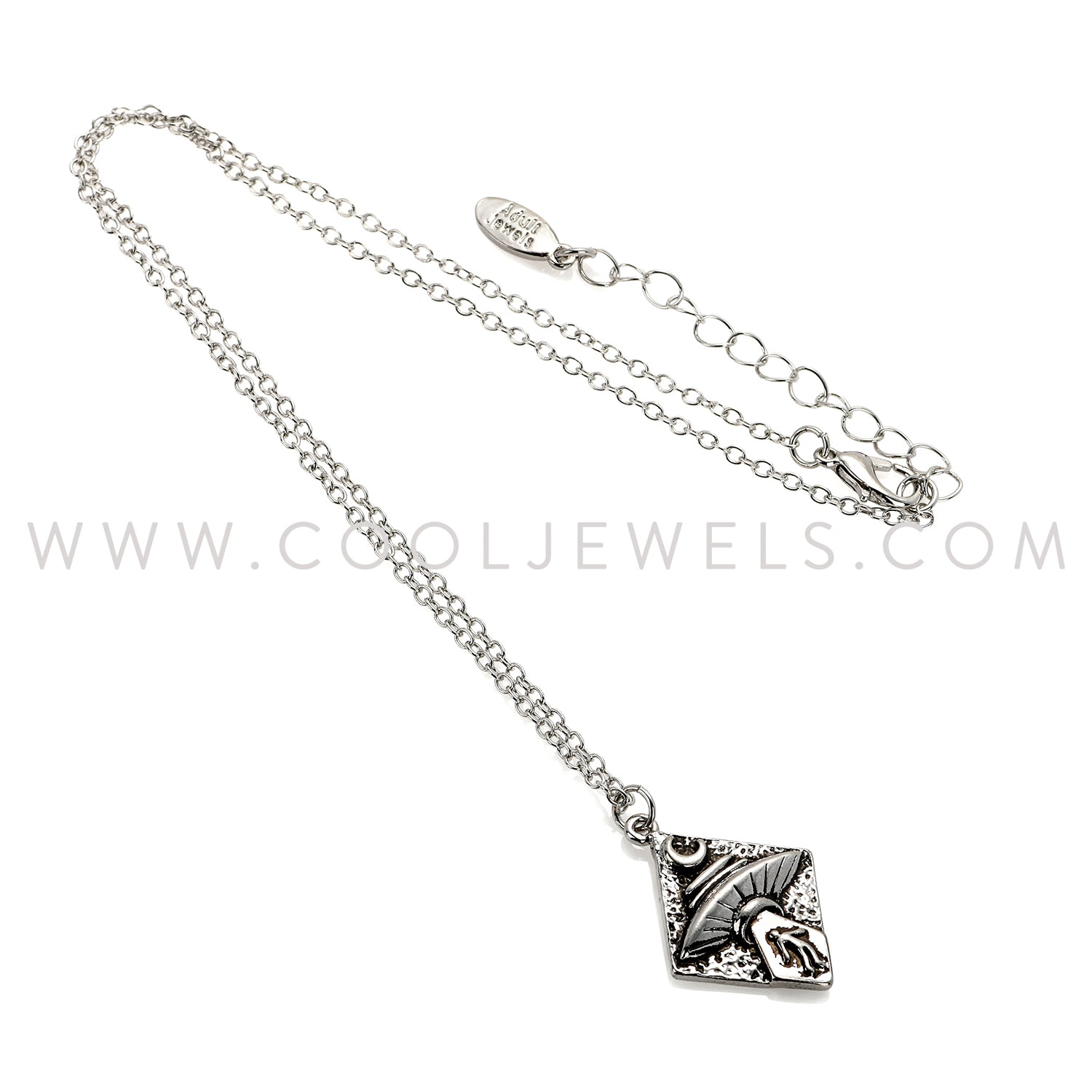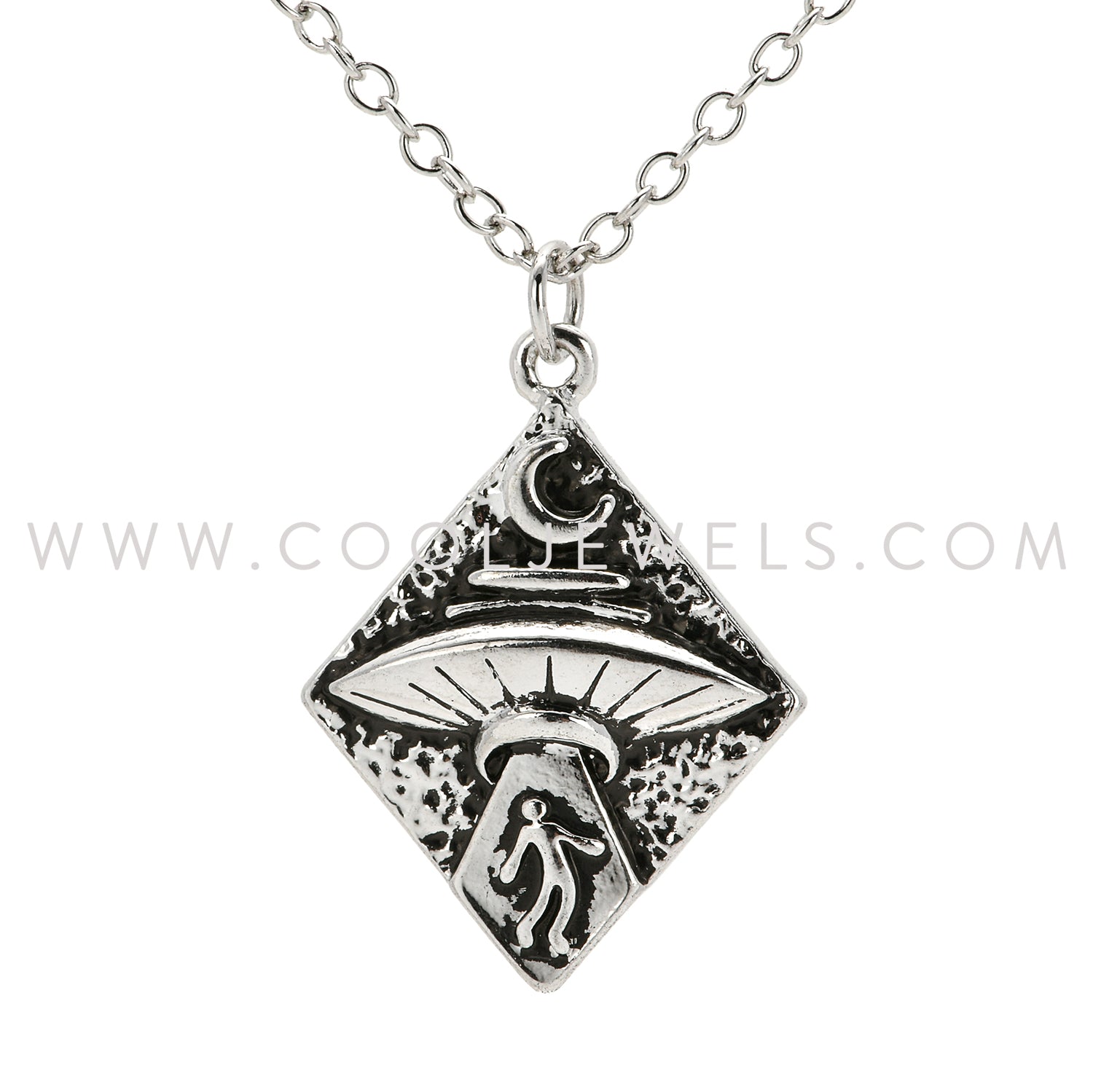 LINK CHAIN NECKLACE WITH DIAMOND-SHAPED UFO SPACESHIP PENDANT