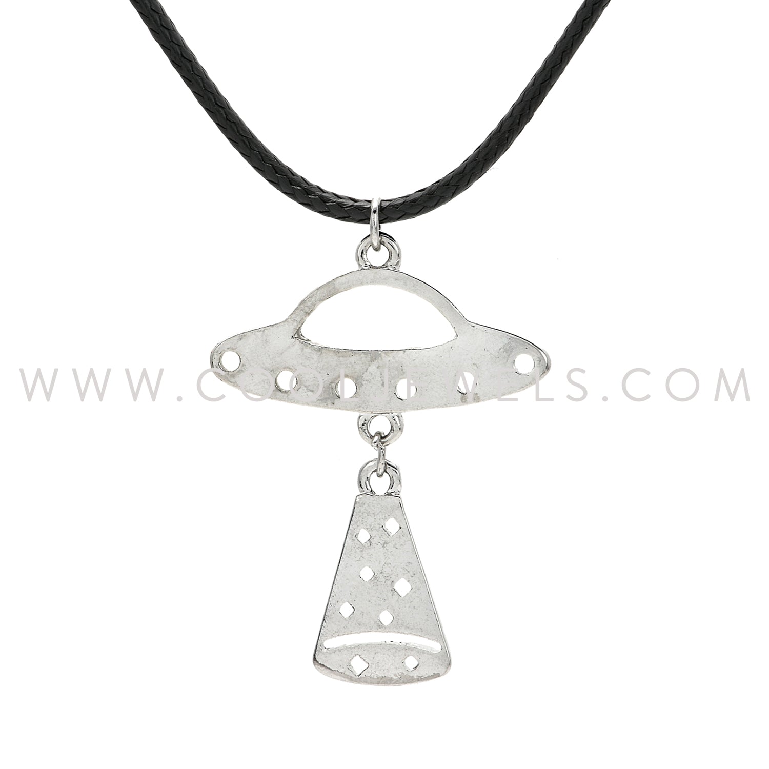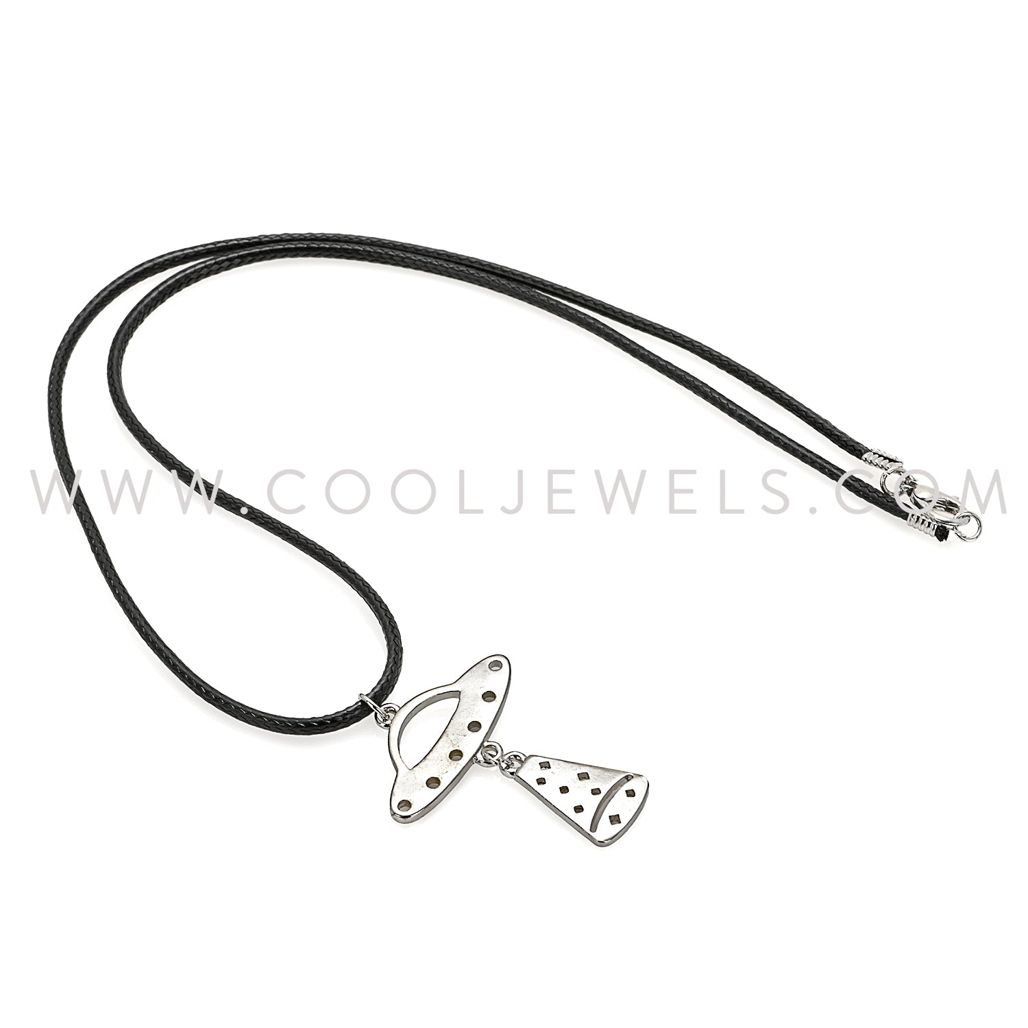 BLACK CORD NEACKLACE WITH UFO SPACESHIP PENDANT