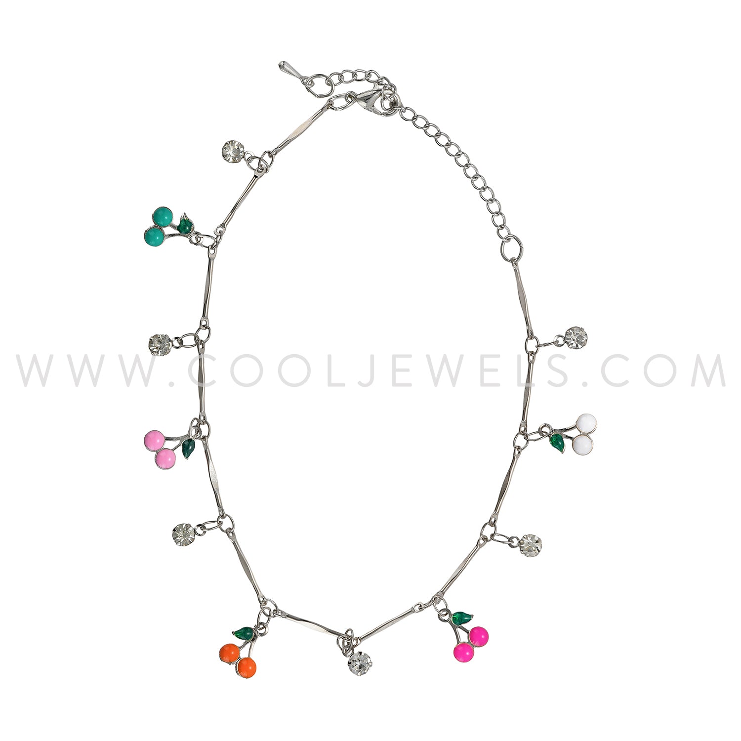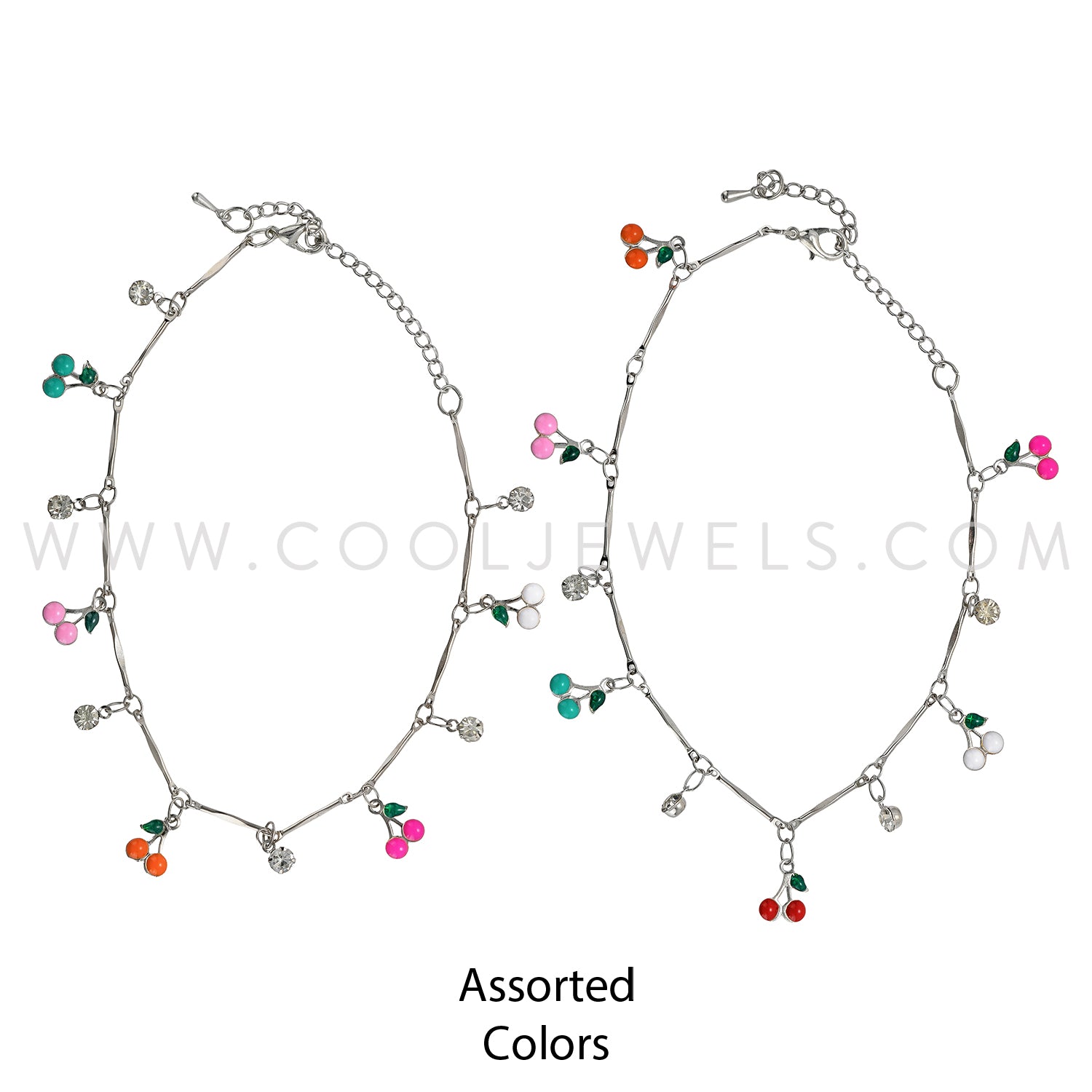 FASHION CHAIN ANKLET WITH DROP RHINESTONES & CHERRIES - ASSORTED