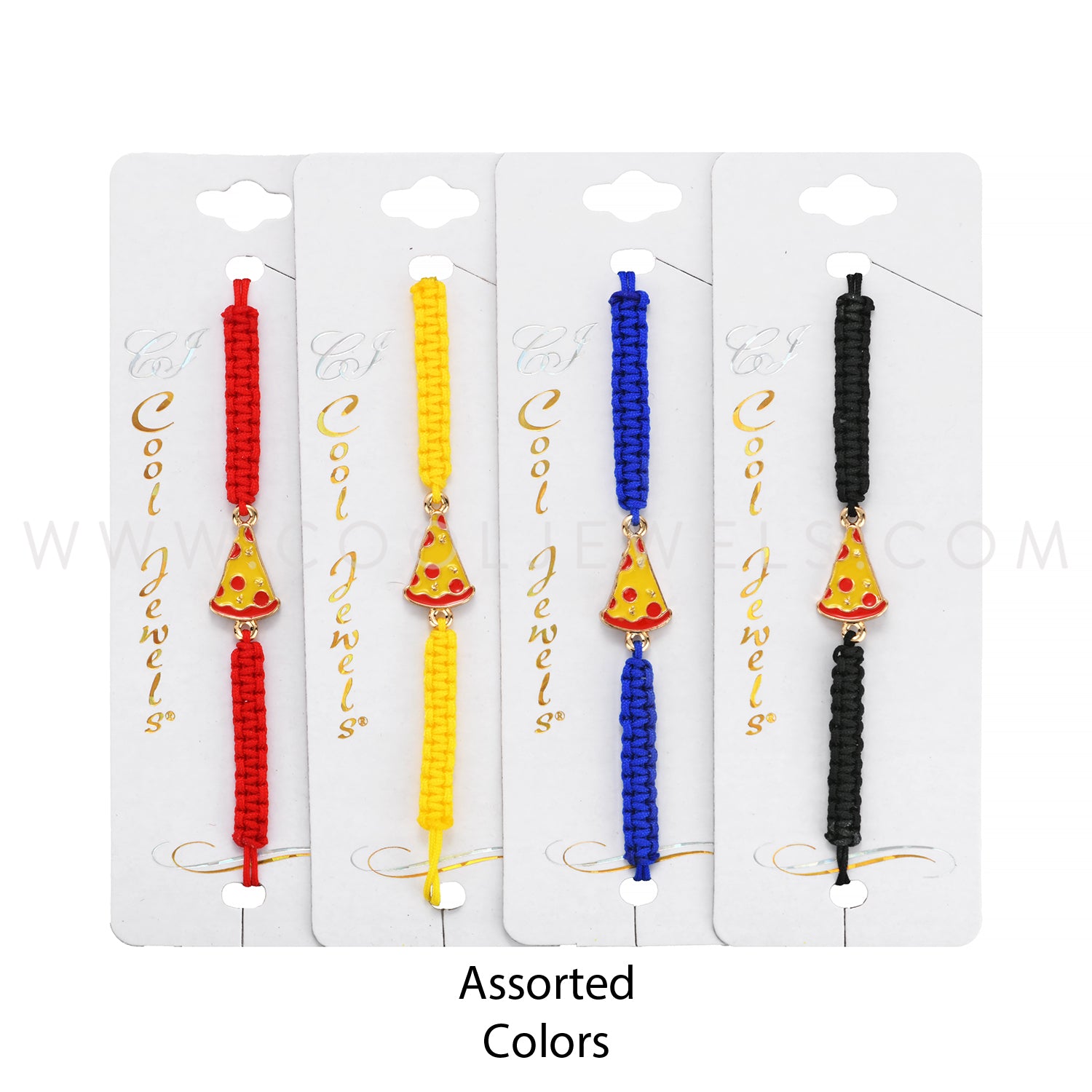 BRAIDED SLIDER CORD BRACELET WITH PIZZA SLICE PENDANT ASSORTED - CARDED