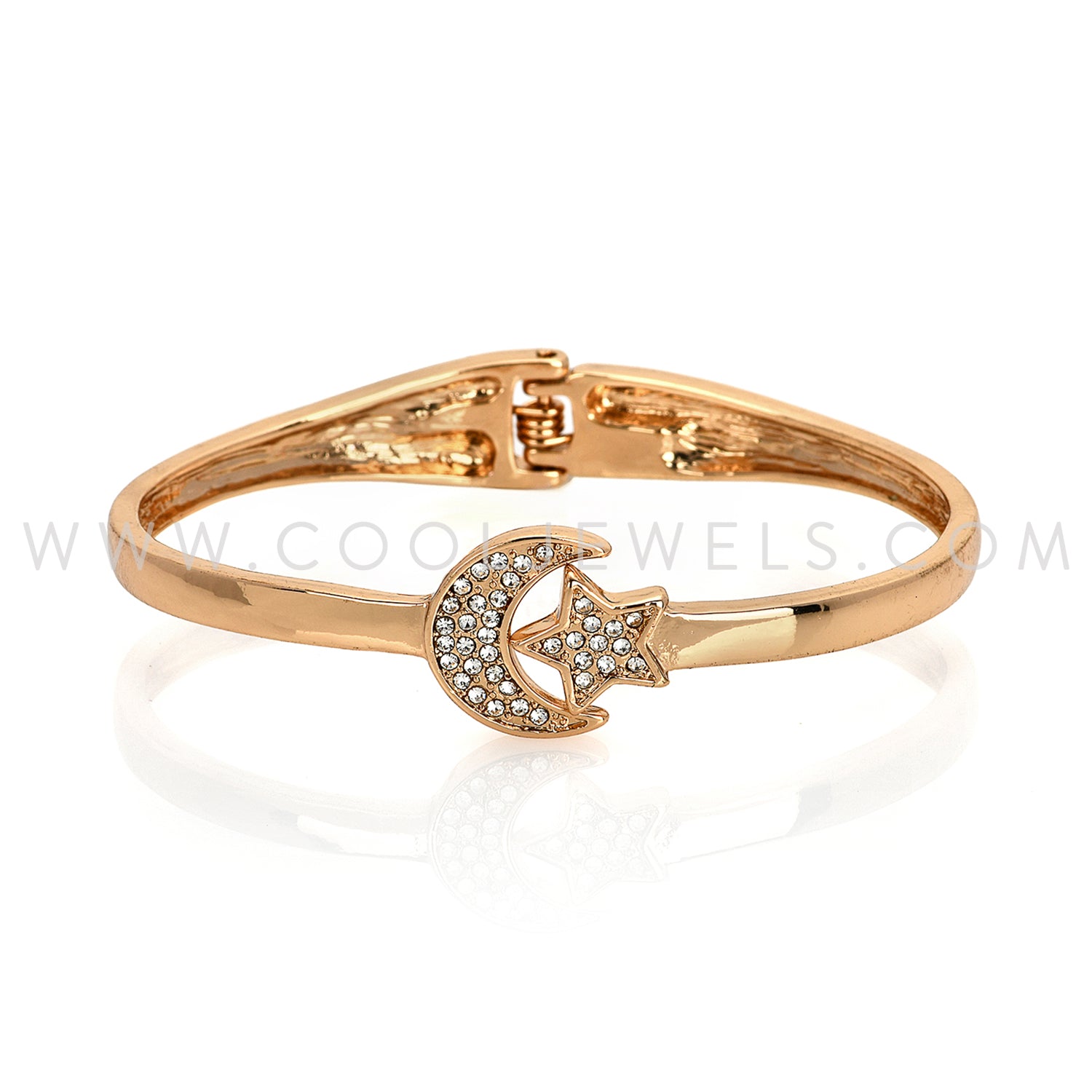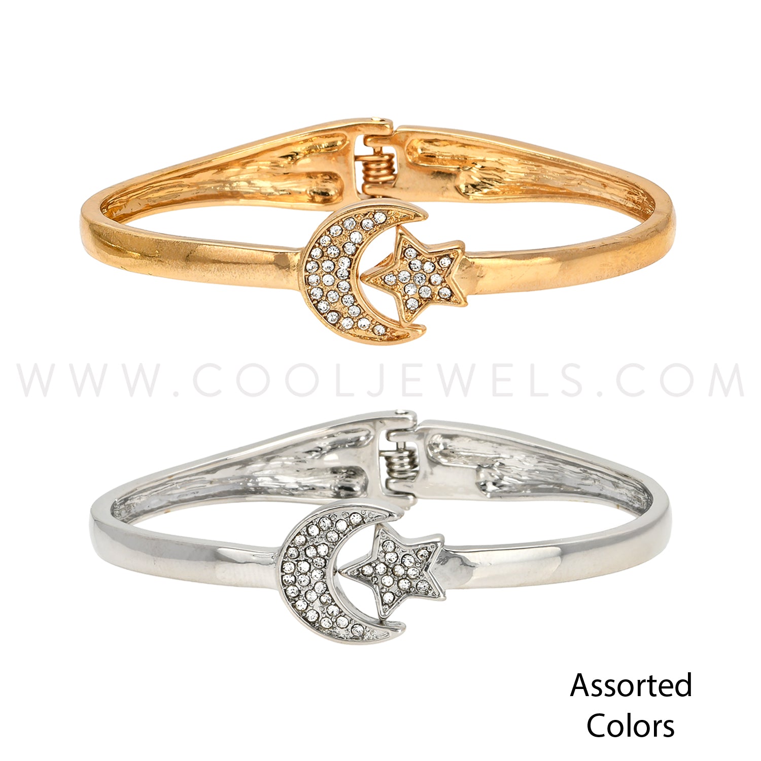 HINGE BANGLE BRACELET WITH RHINESTONE MOON & STAR - ASSORTED