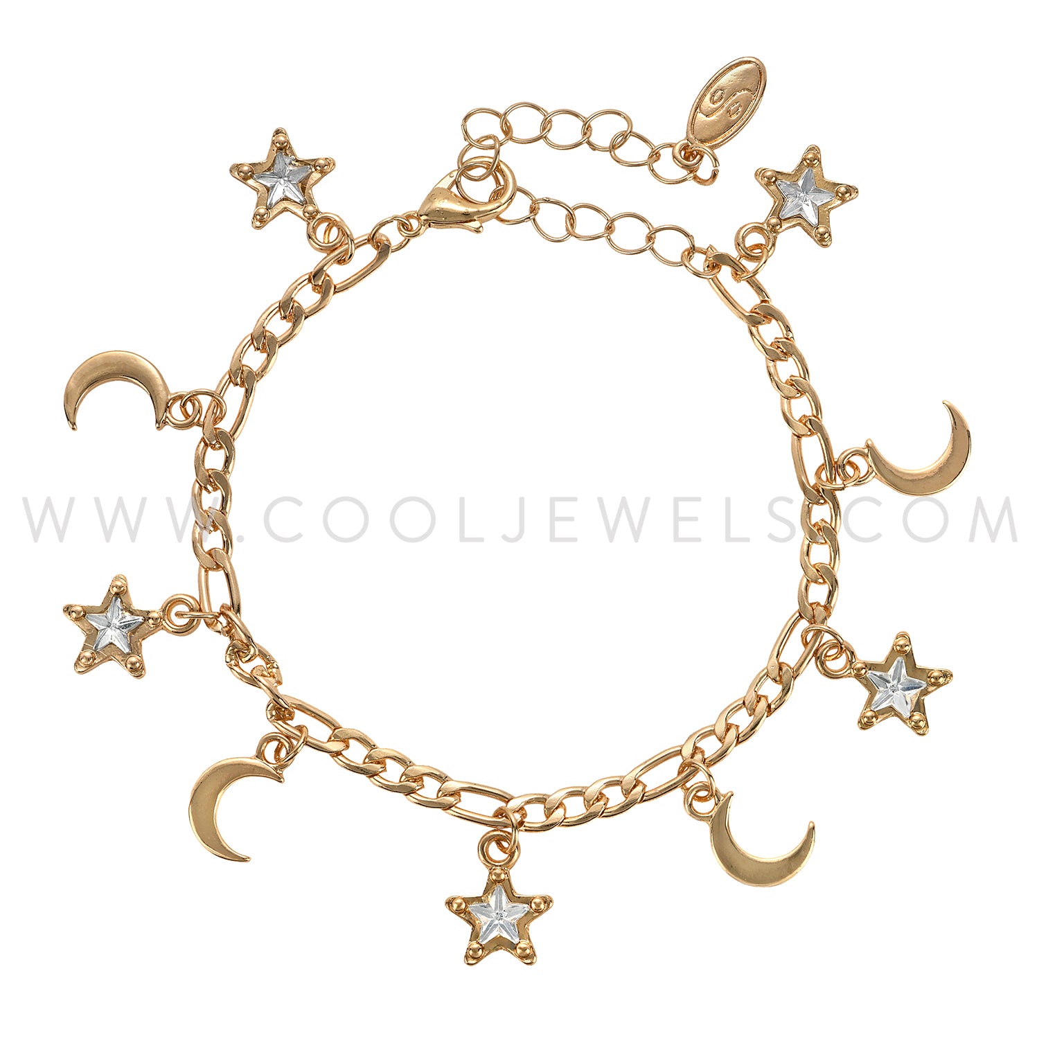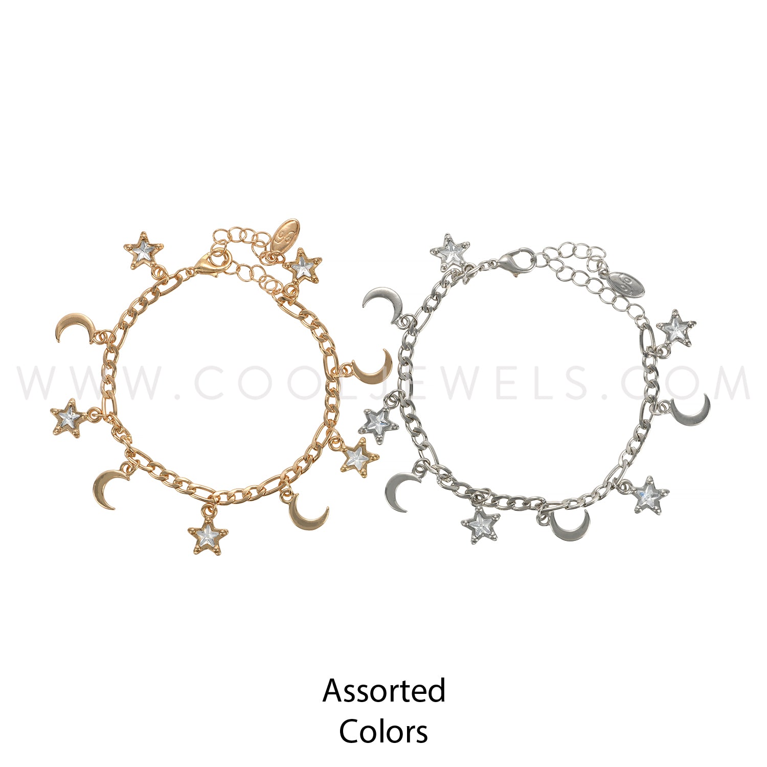 LINK CHAIN BRACELET WITH MOONS & RHINESTONE STARS - ASSOTED