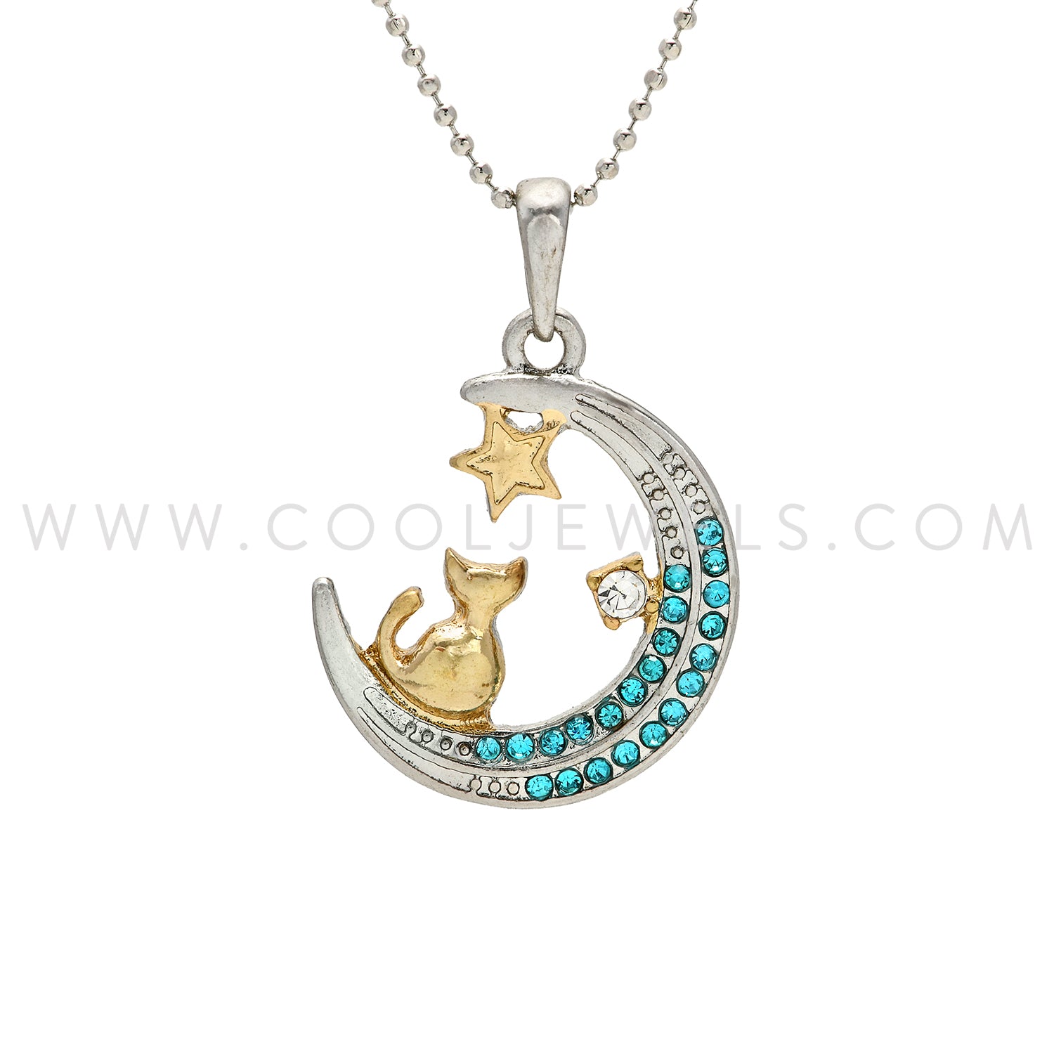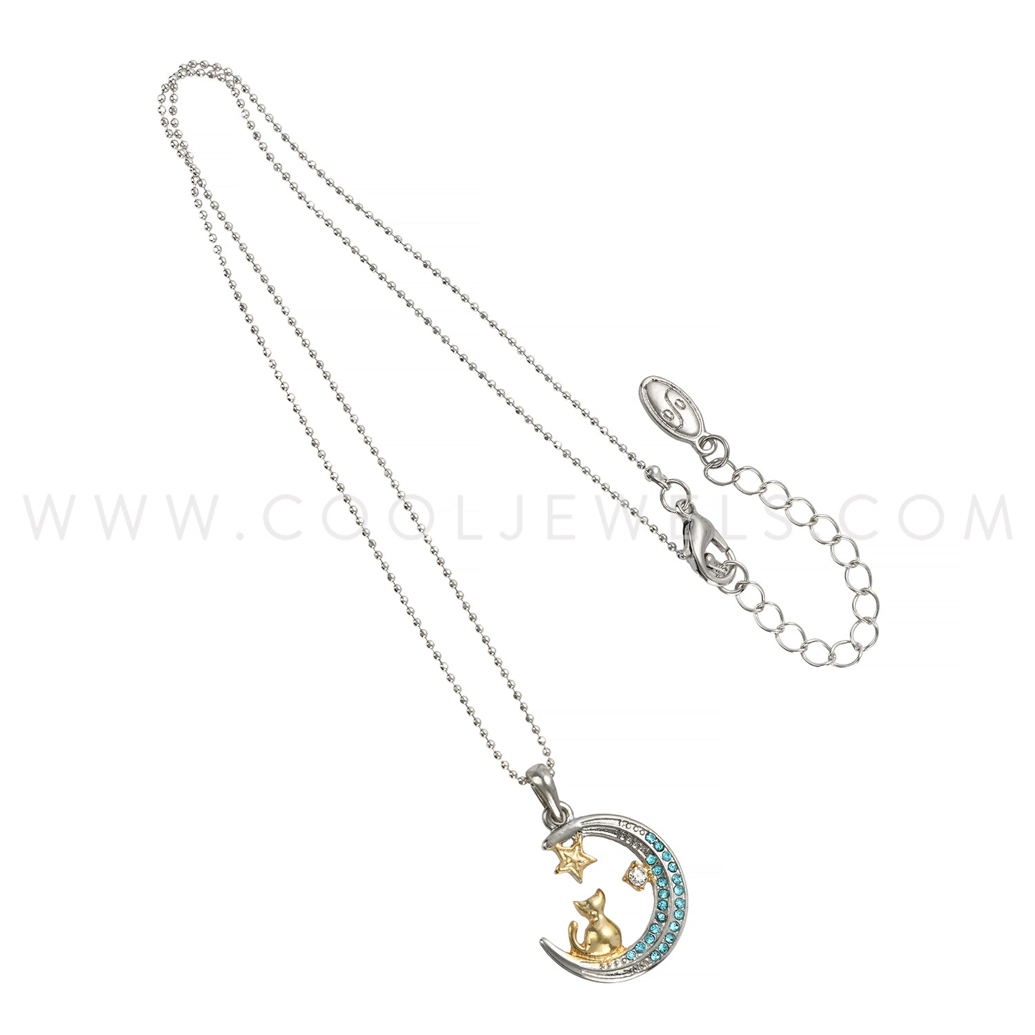 LINK CHAIN NECKLACE WITH RHINESTONE MOON PENDANT WITH CAT - ASSORTED