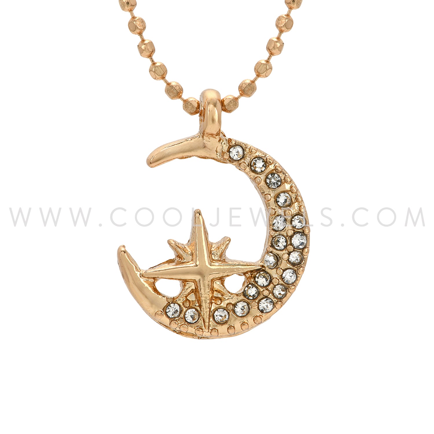 DIAMOND CUT BALL CHAIN NECKLACE WITH RHINESTONE MOON/STAR PENDANT - ASSORTED
