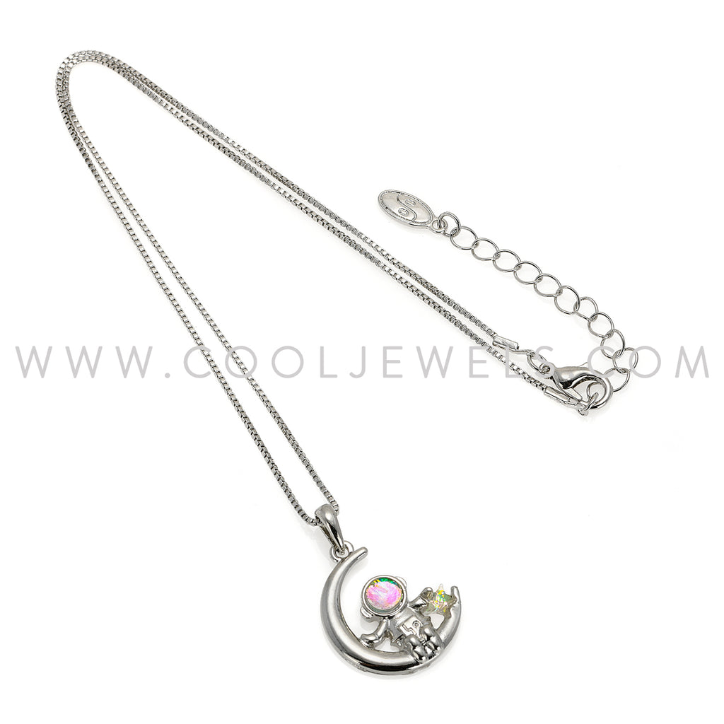 BOX CHAIN NECKLACE WITH MOON PENDANT WITH ASTRONAUT