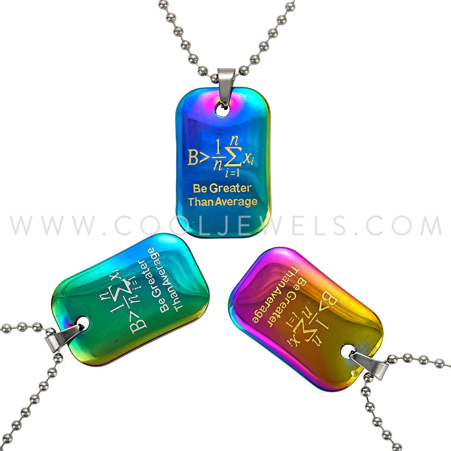 These fashionable Double Sided Silver & Gold Rainbow Hematite "Be Greater Than Average" Cord Slider Necklaces feature a double sided silver & gold "be greater than average" quote on rainbow hematite pendant strung on an adjustable black cord.