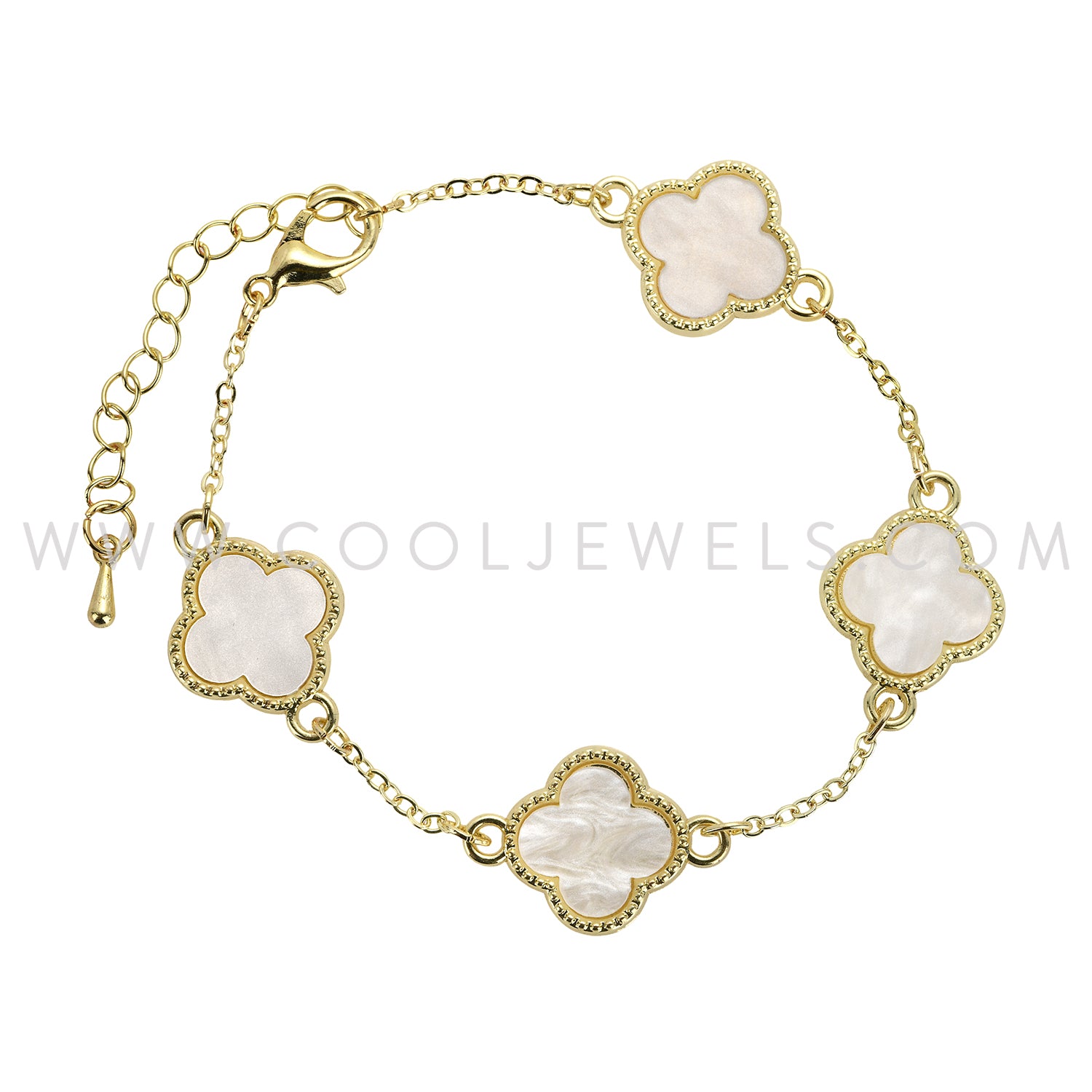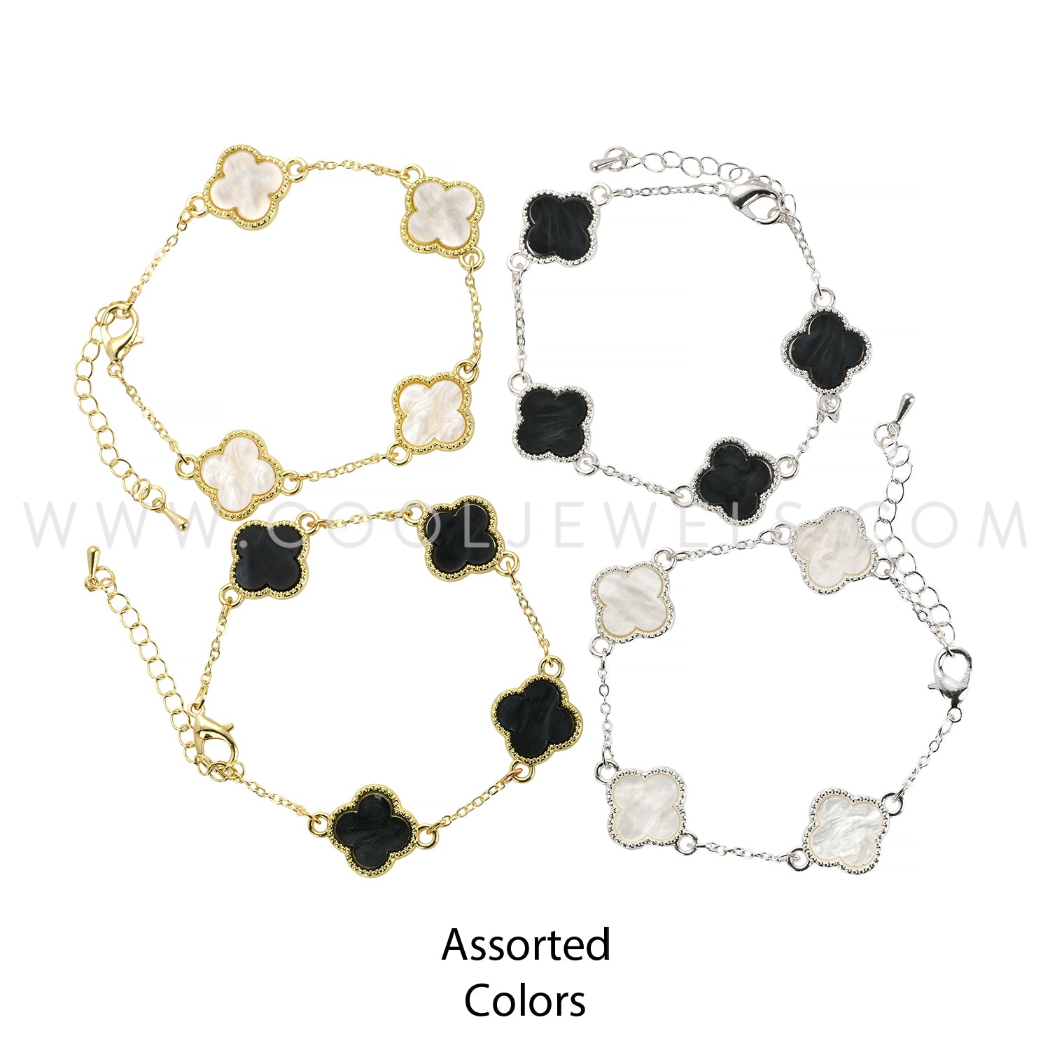 LINK CHAIN BRACELET WITH FIVE ENAMEL CLOVERS - ASSORTED