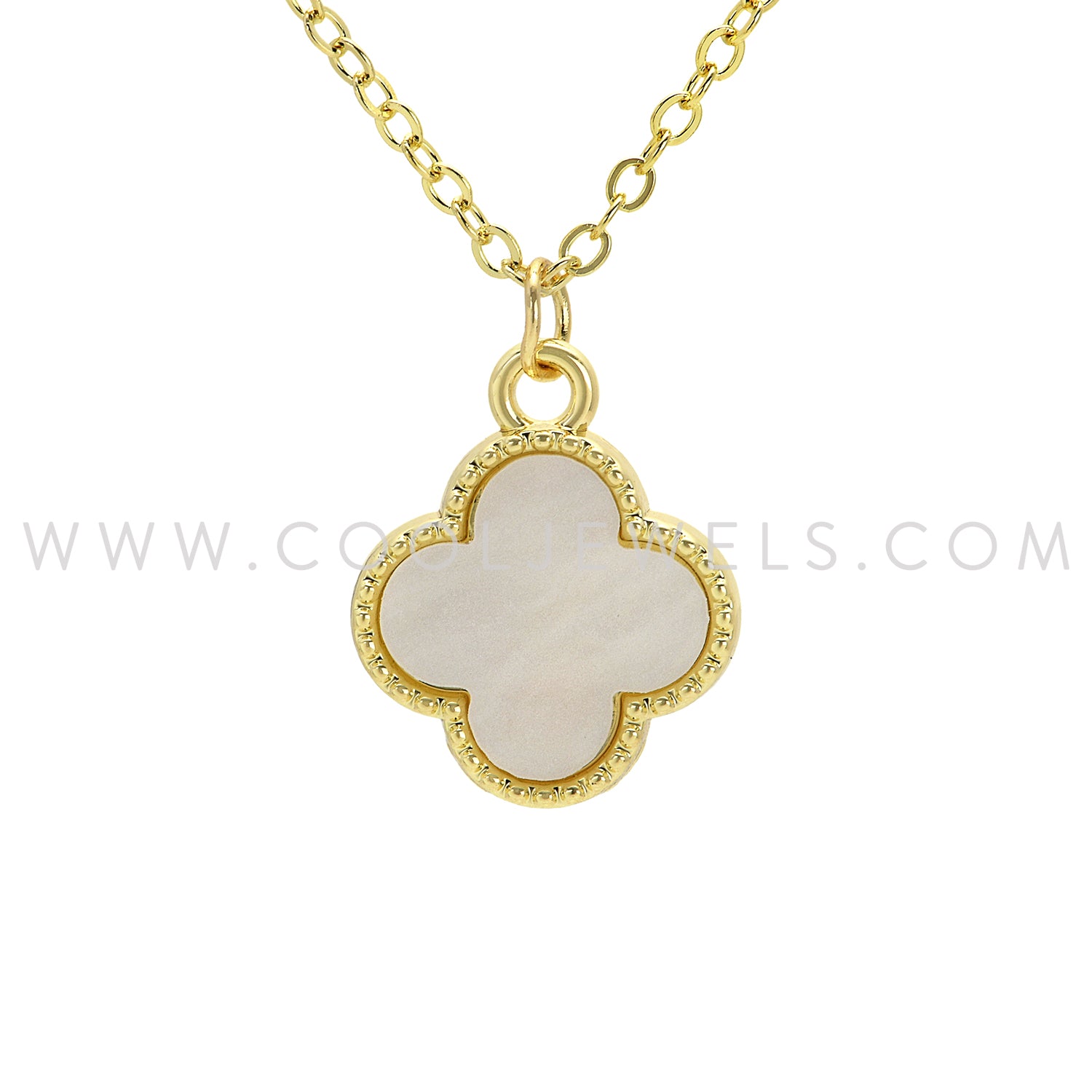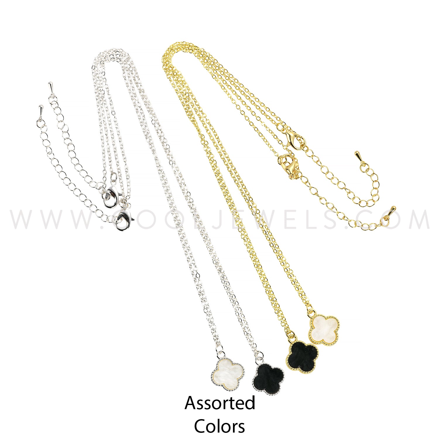 LINK CHAIN NECKLACE WITH ENAMEL CLOVER PENDANT - ASSORTED