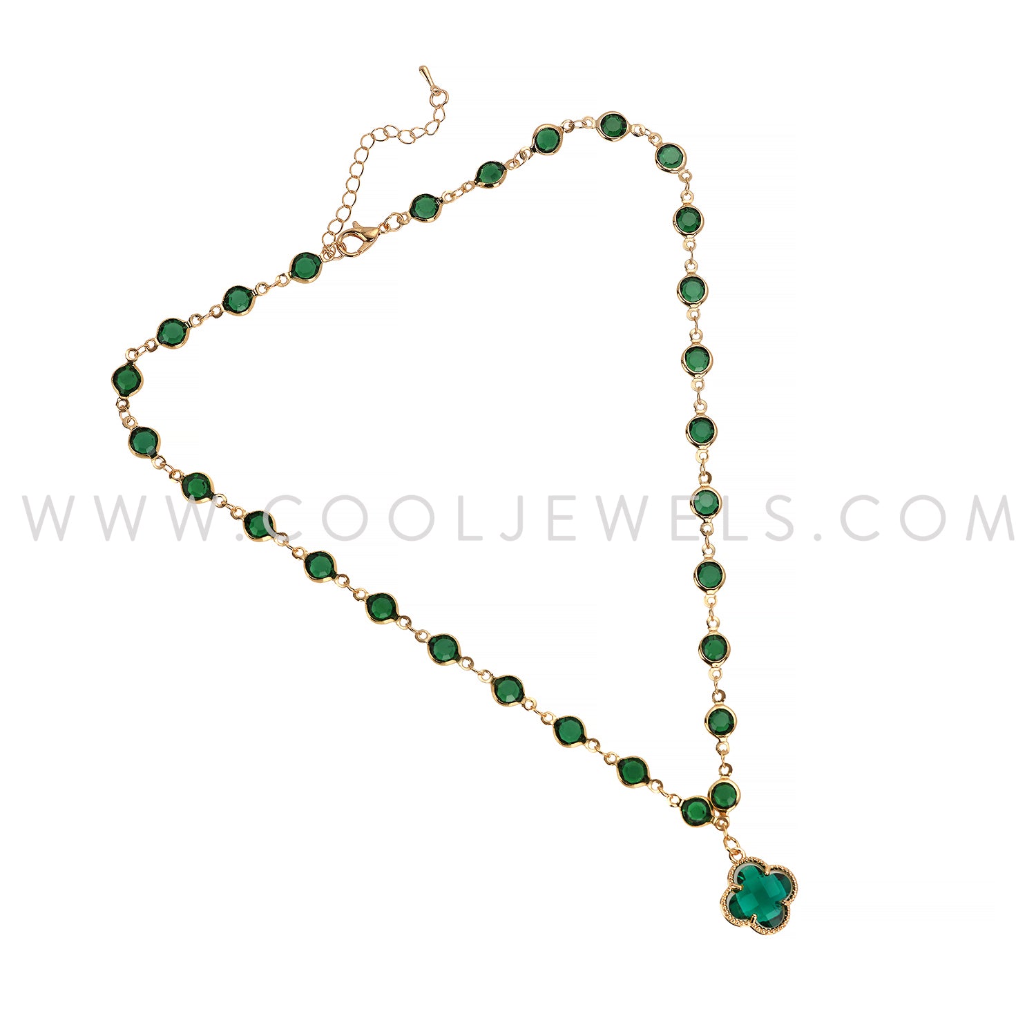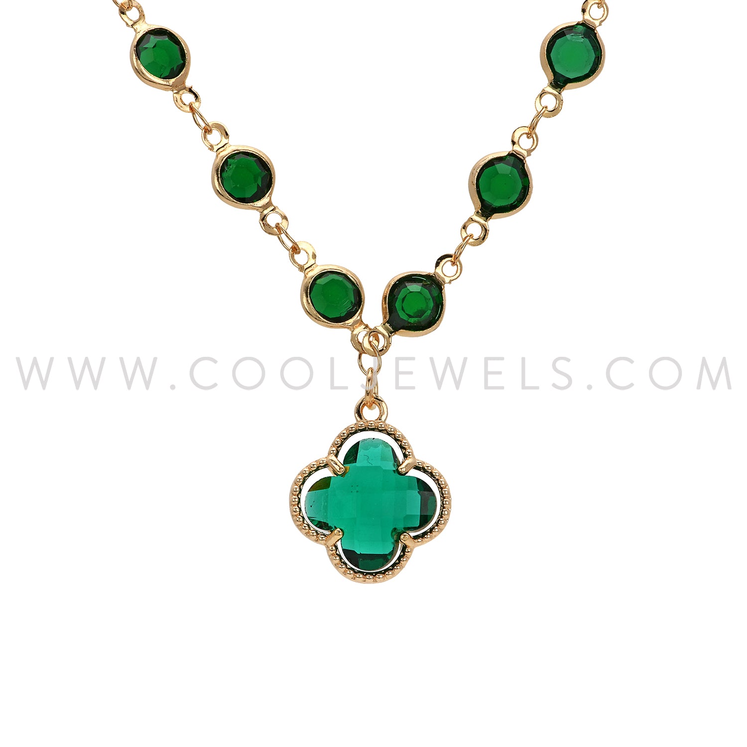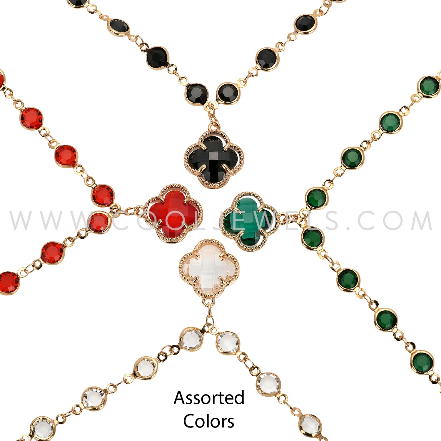 BEADED CHAIN NECKLACE WITH CLOVER PENDANT - ASSORTED