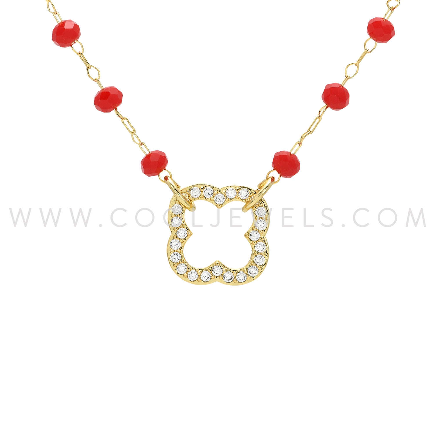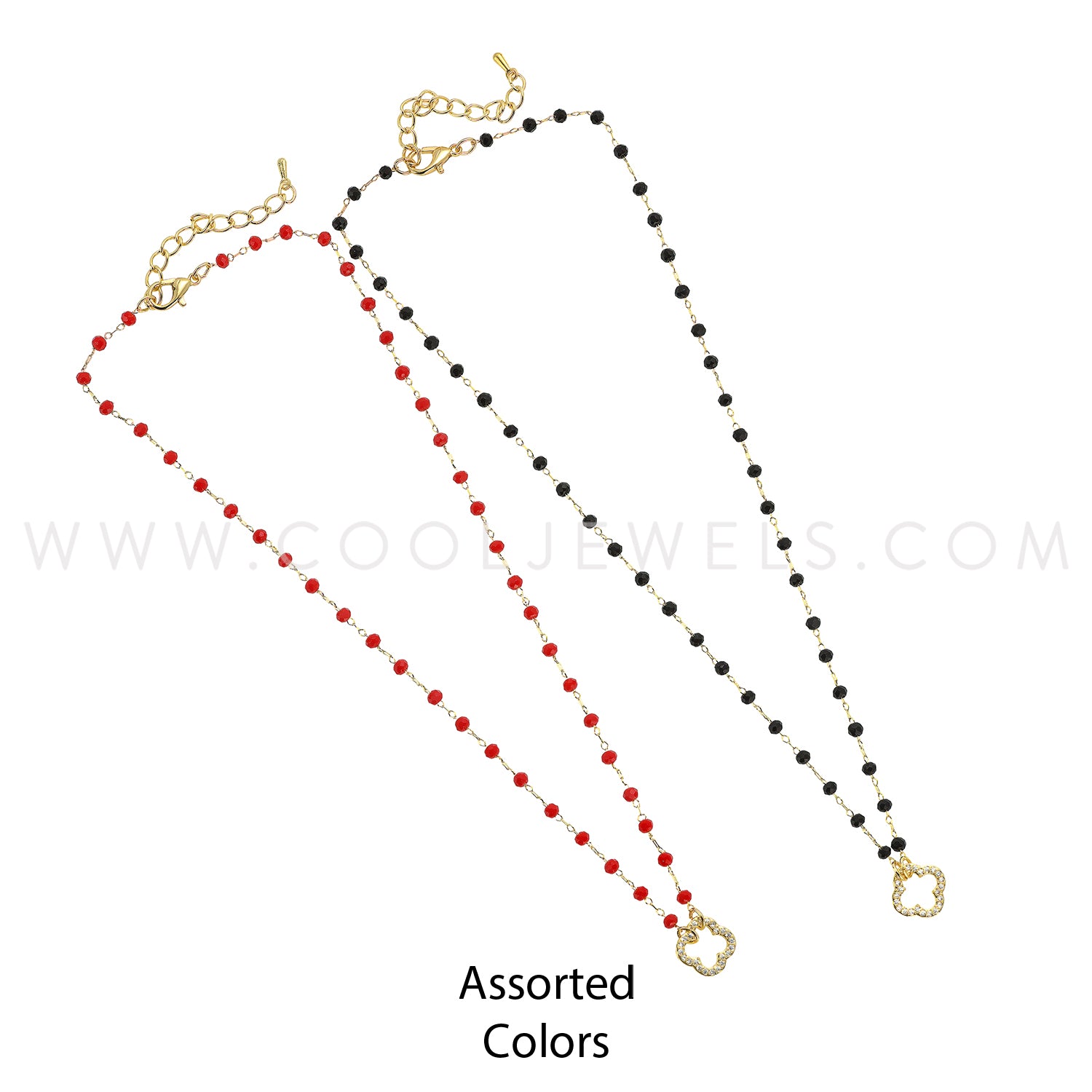 BEADED CHAIN NECKLACE WITH RHINESTONE CLOVER PENDANT - ASSORTED