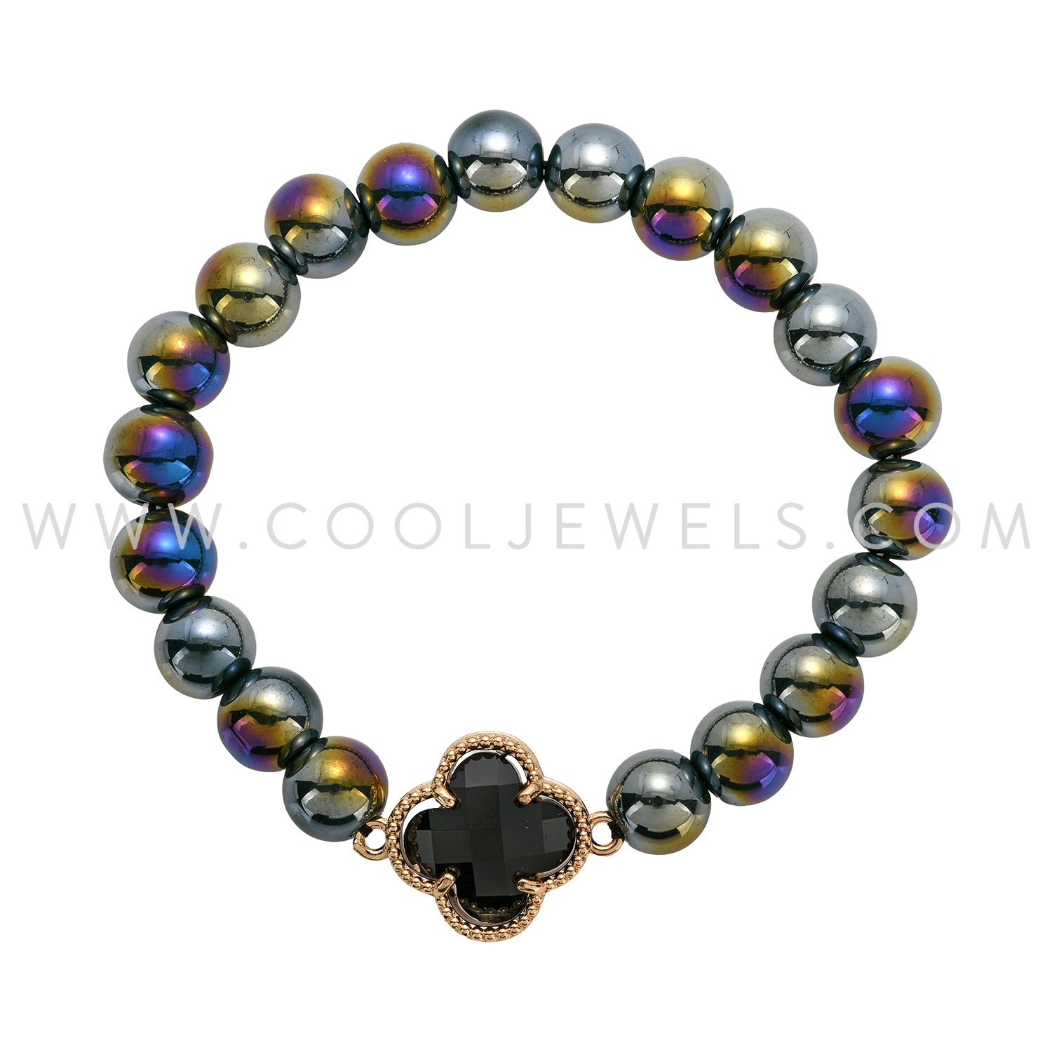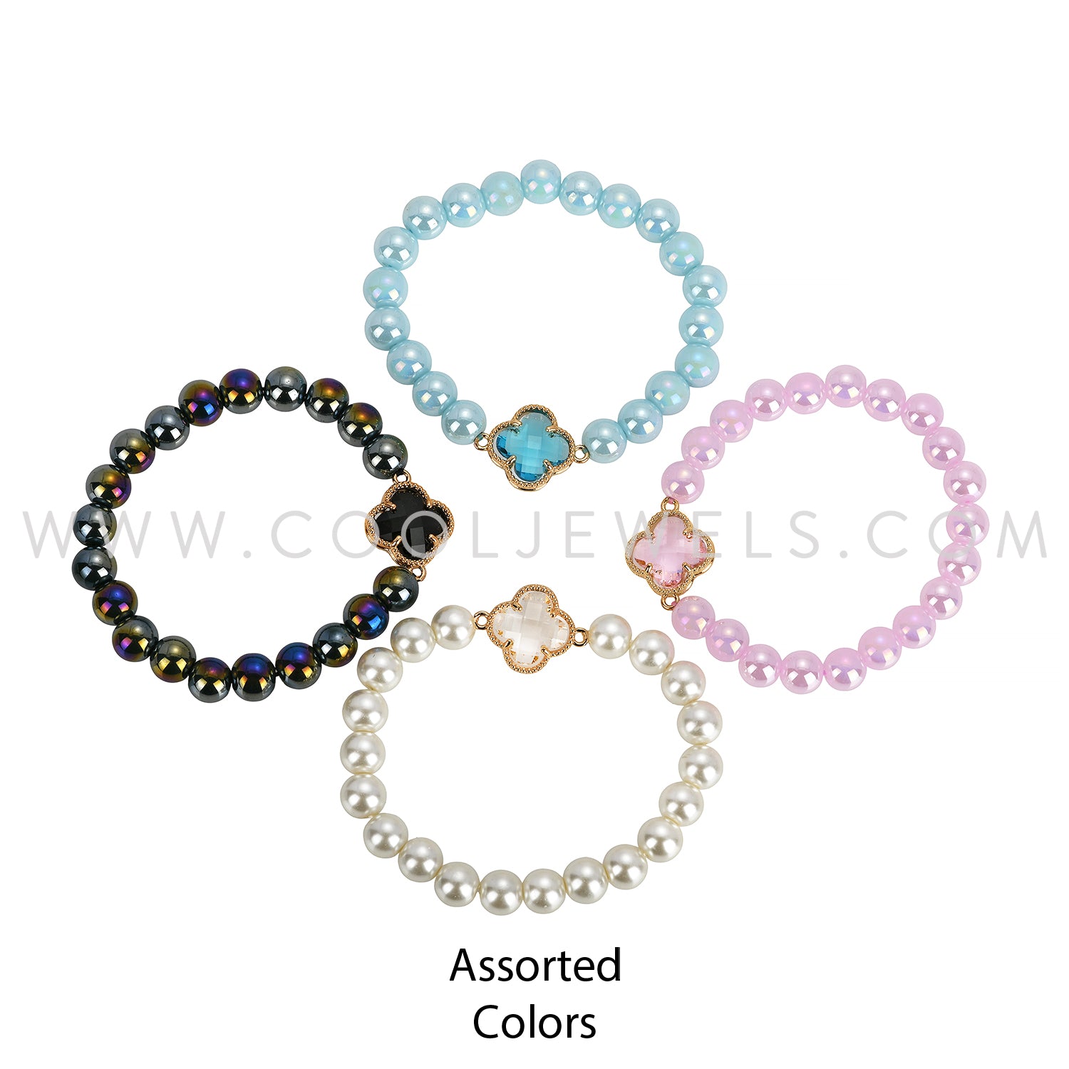 STRETCH BEADED BRACELET WITH CLOVER PENDANT - ASSORTED