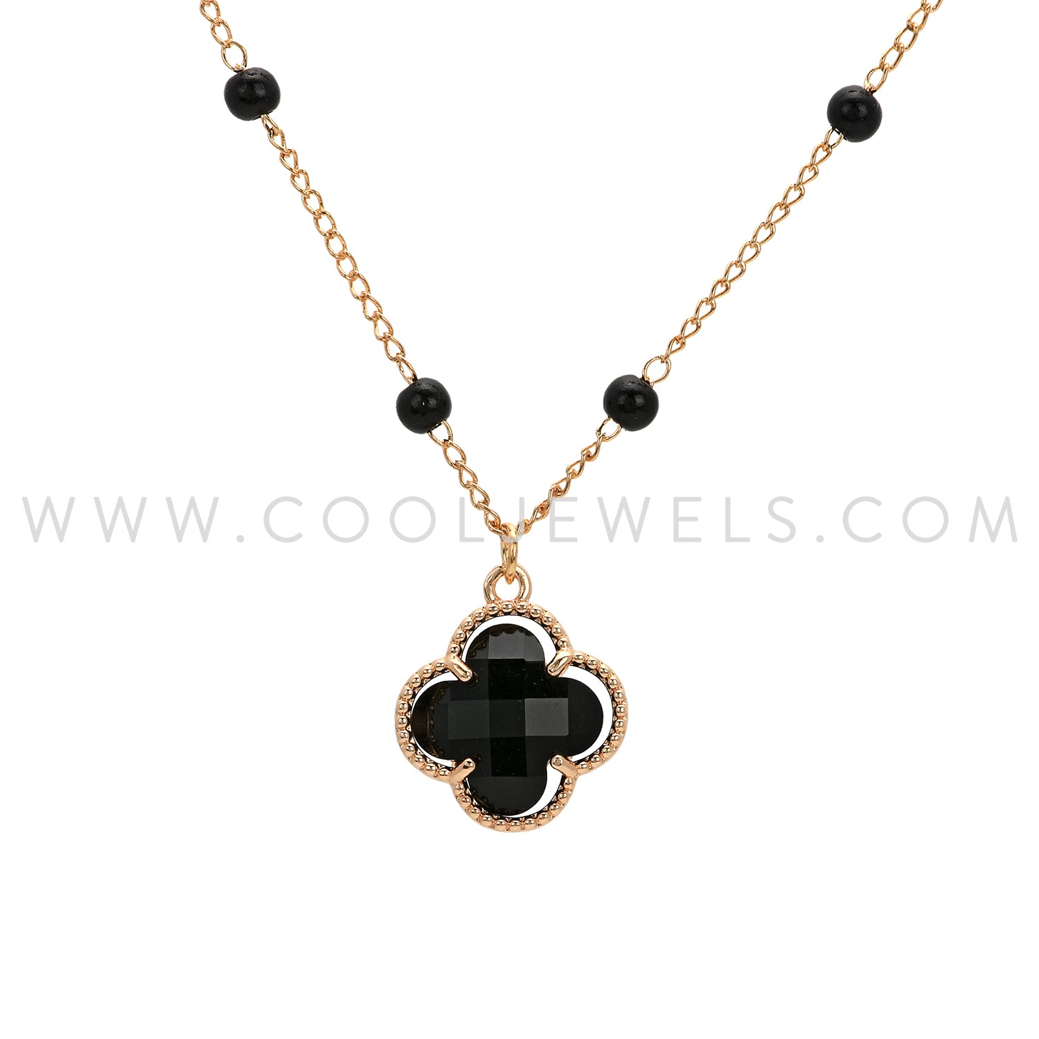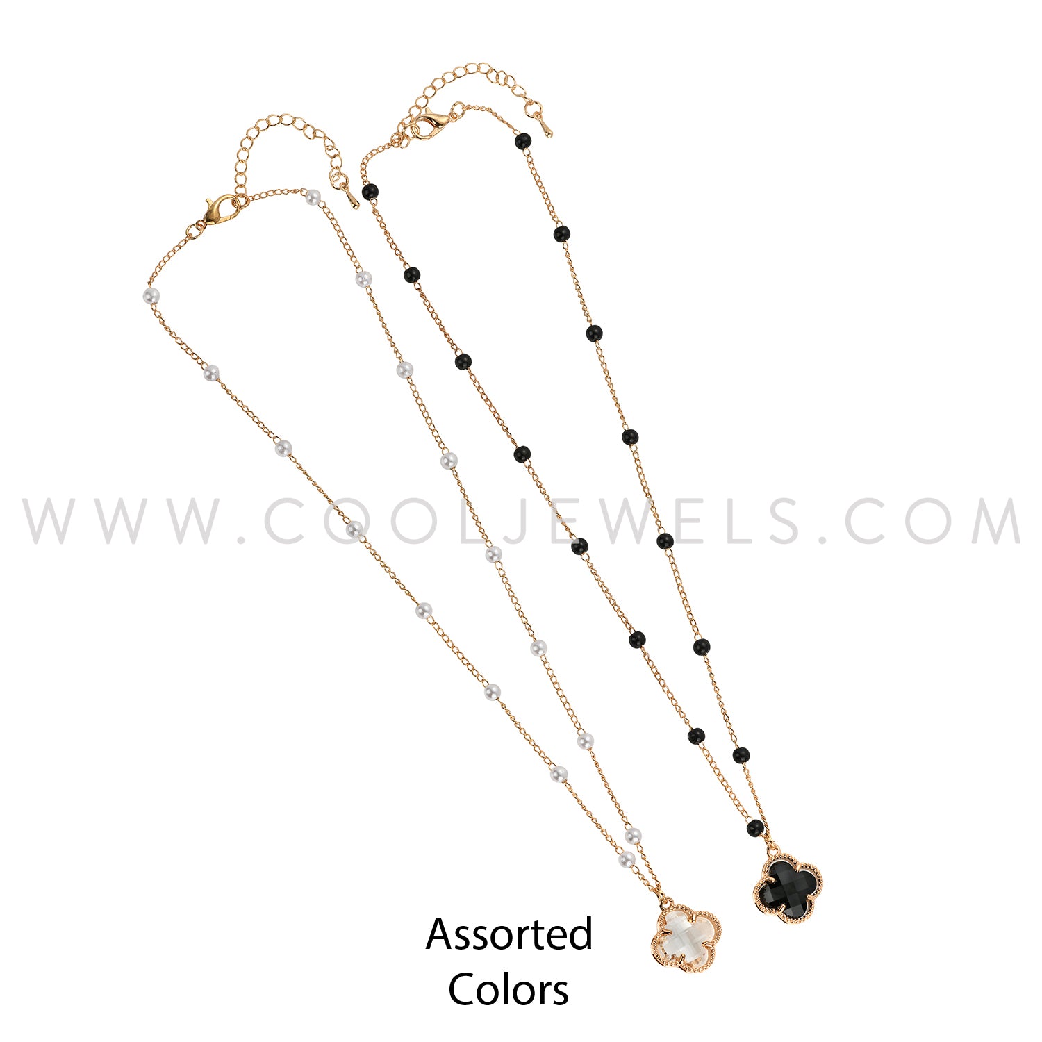 PEARL BEADED CHAIN NECKLACE WITH CLOVER PENDANT - ASSORTED