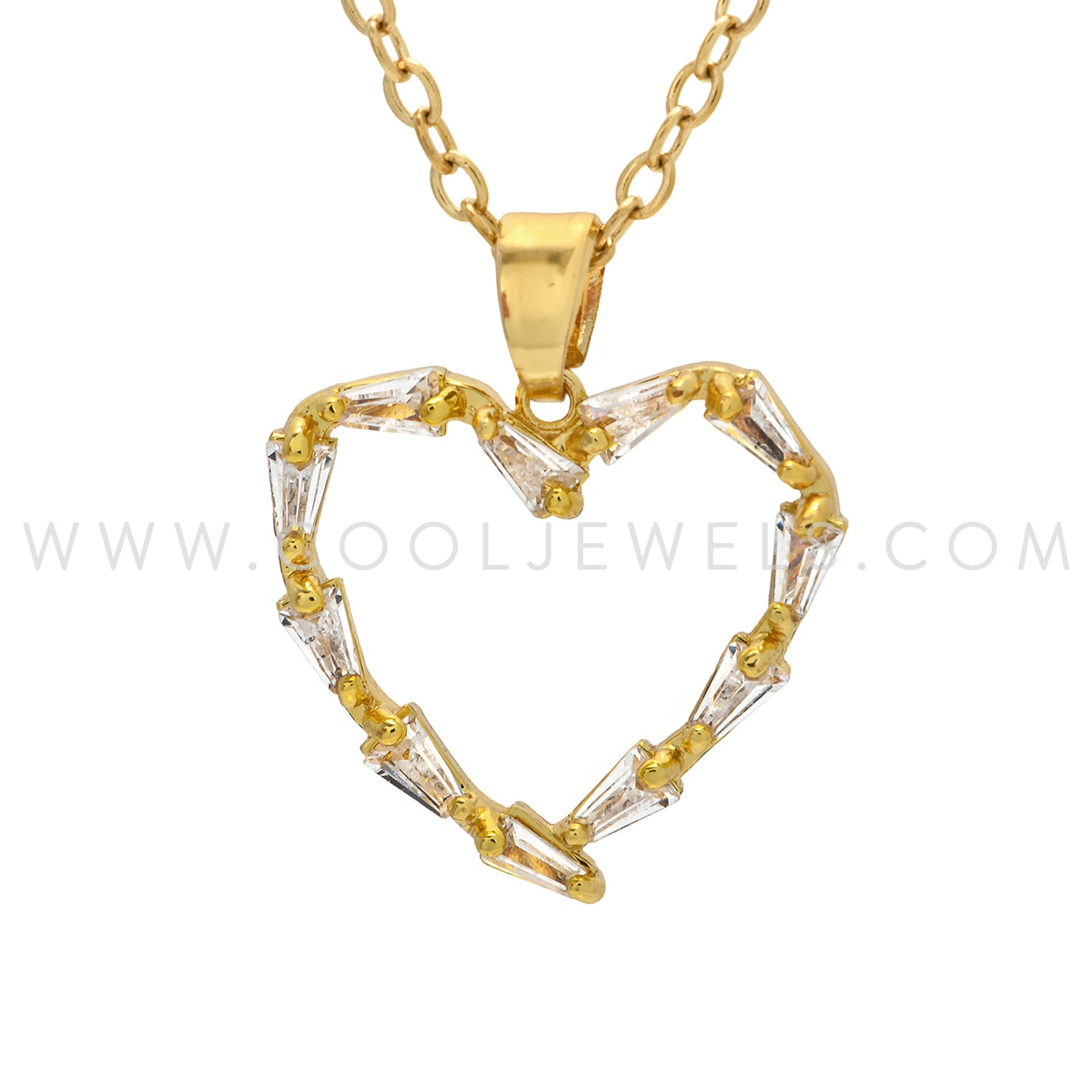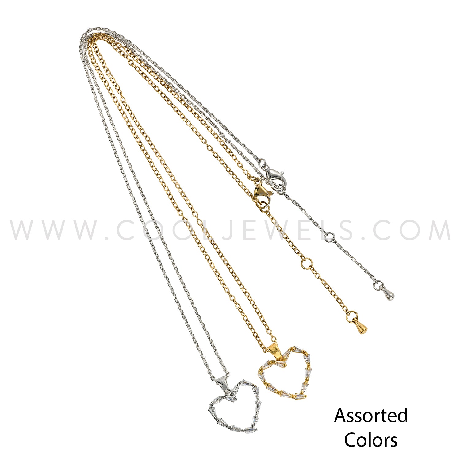 LINK CHAIN NECKLACE WITH RHINESTONE HEART PENDANT - ASSORTED COLORS