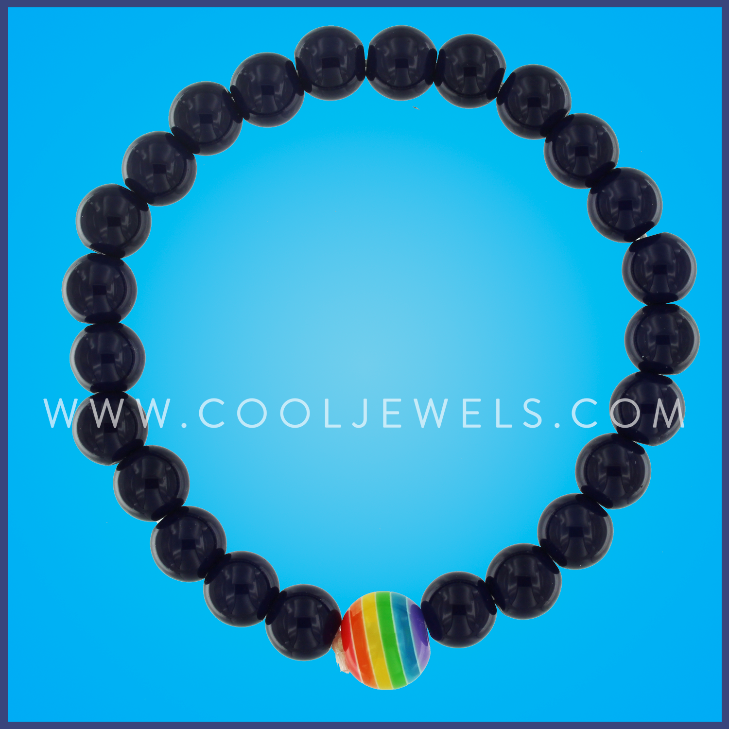 BEADED STRETCH BRACELET WITH RAINBOW BEAD