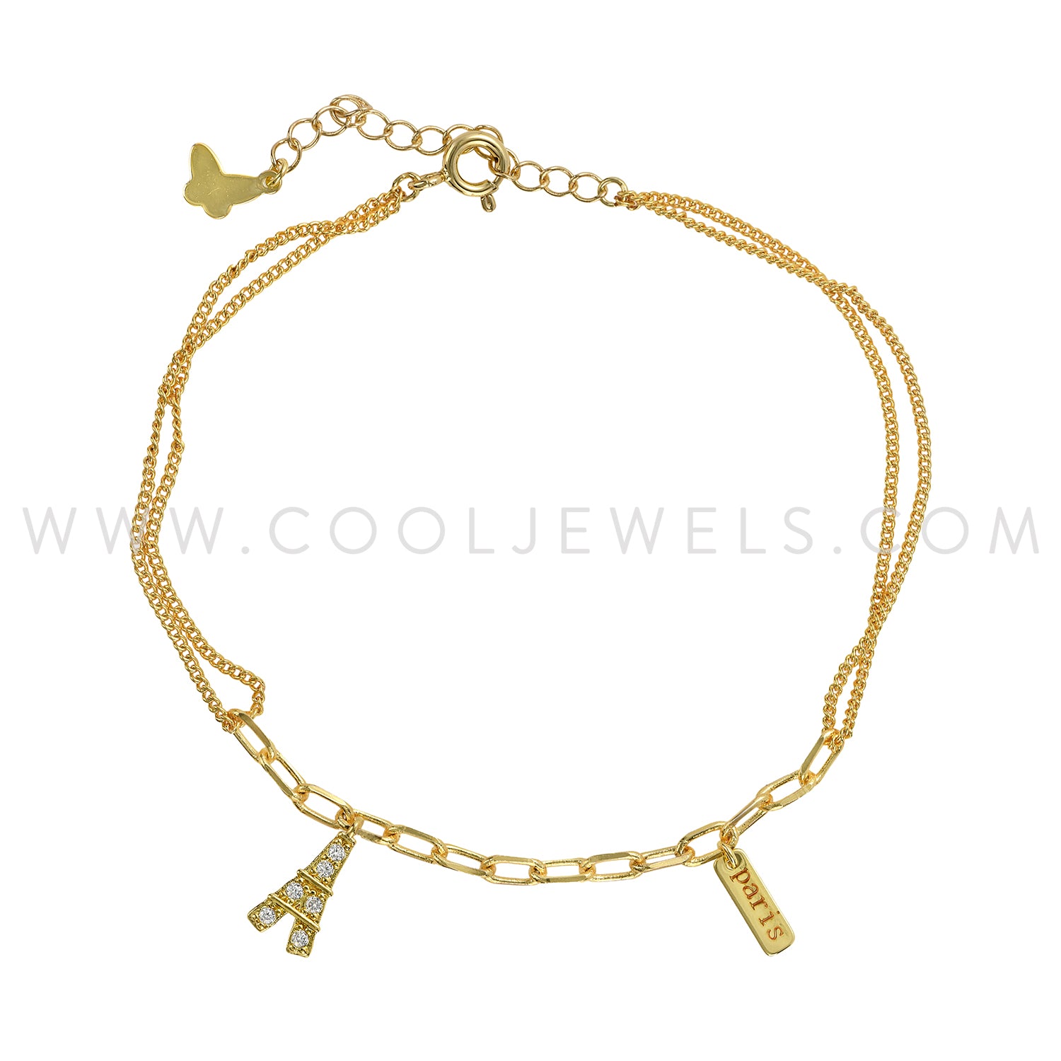 GOLD LINK CHAIN BRACELET WITH RHINESTONE EIFFEL TOWER - CARDED