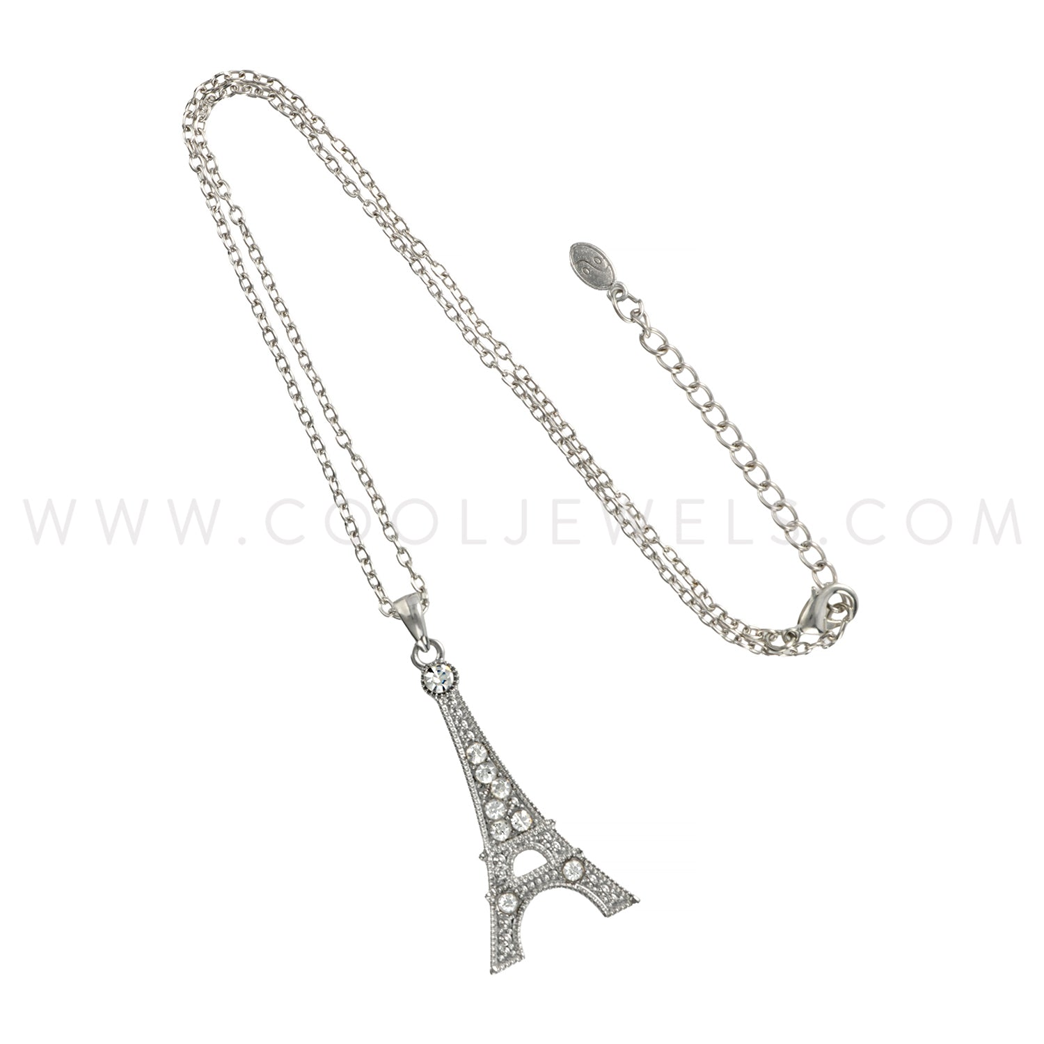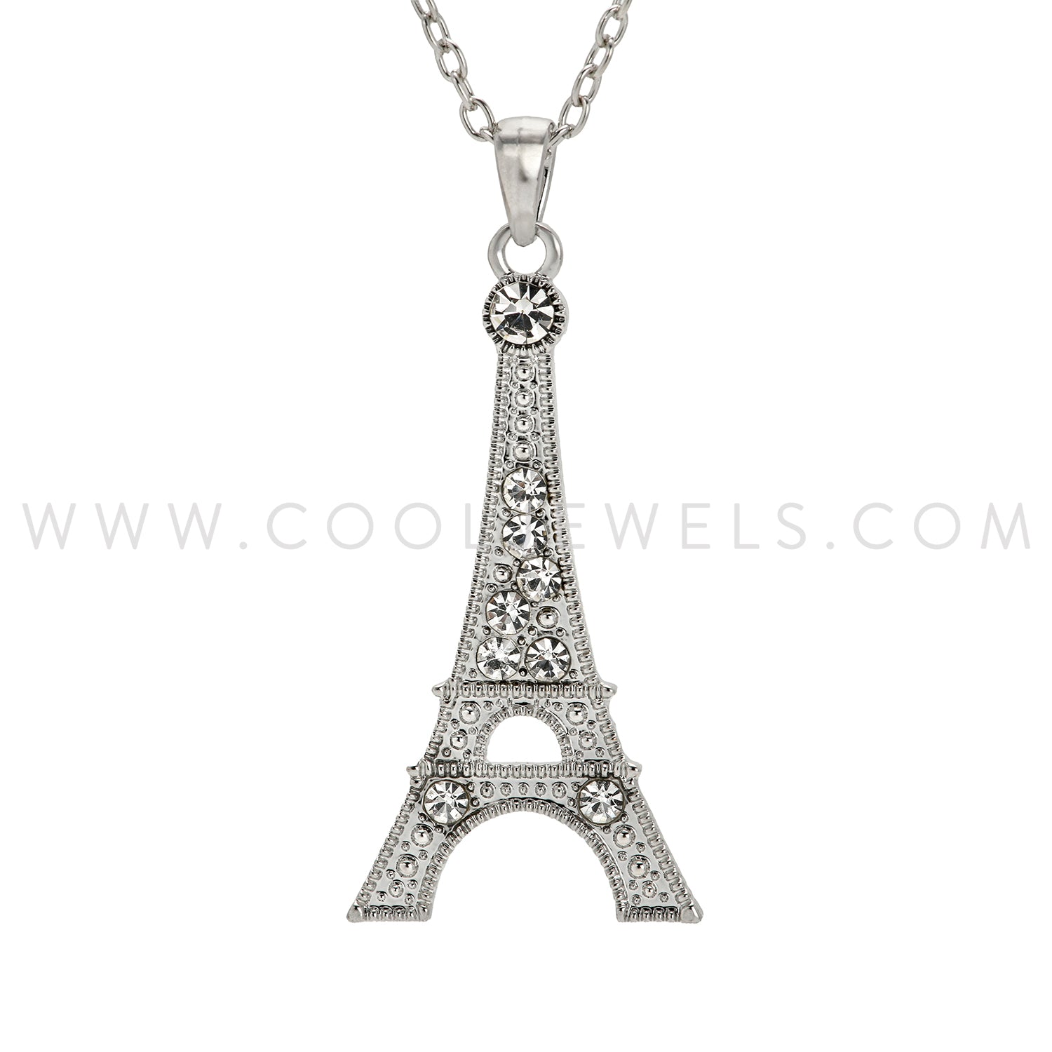 This Rhinestone Eiffel Tower Necklace comes on a silver chain with the Eiffel Tower pendant.