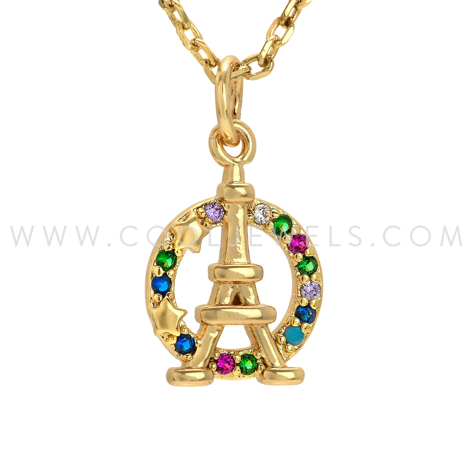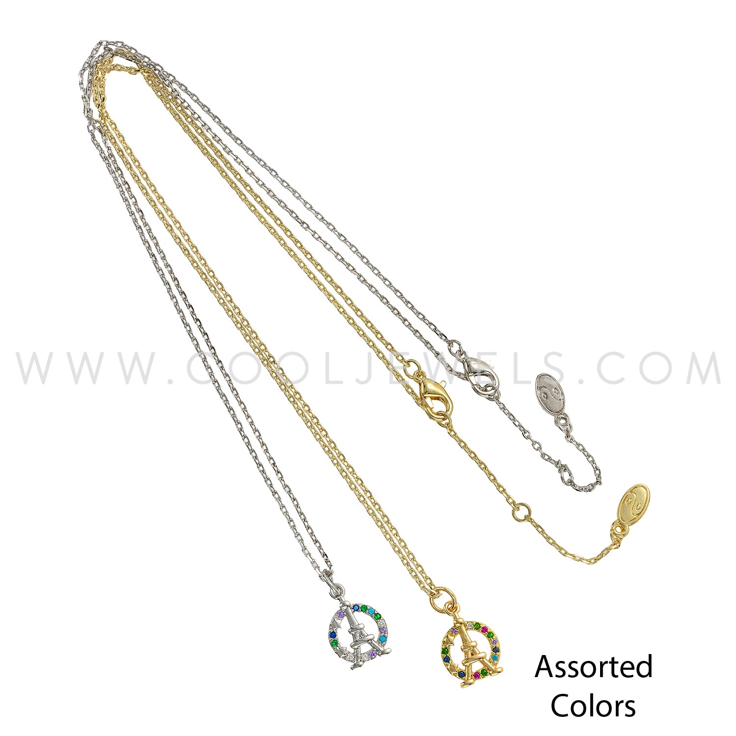 LINK CHAIN NECKLACE WITH RHINESTONE EIFFEL TOWER