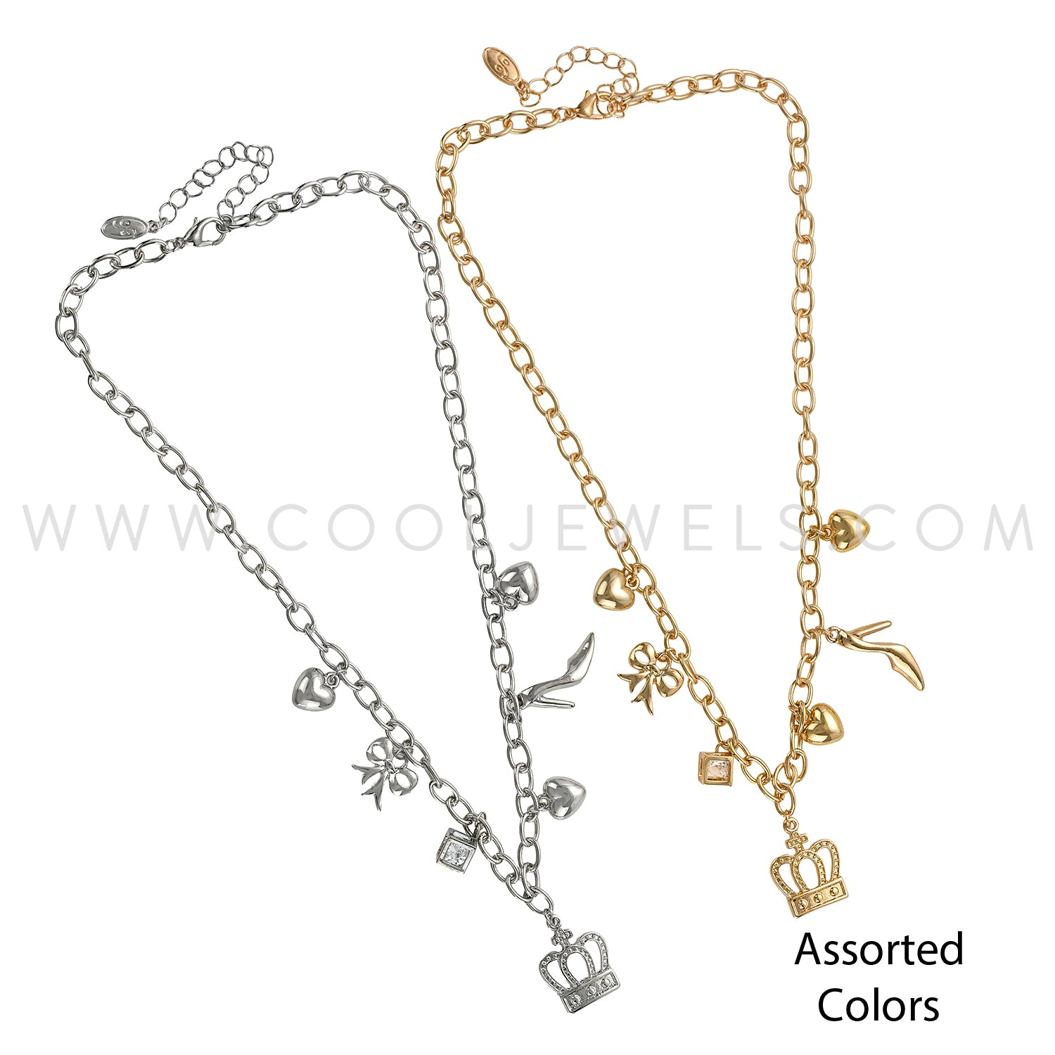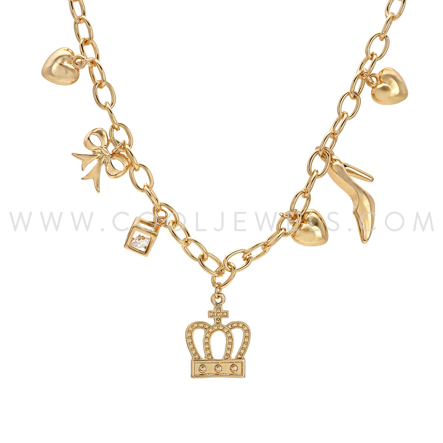 LINK CHAIN CHARM NECKLACE WITH BOW, HEARTS, CROWN, & HIGH-HEEL