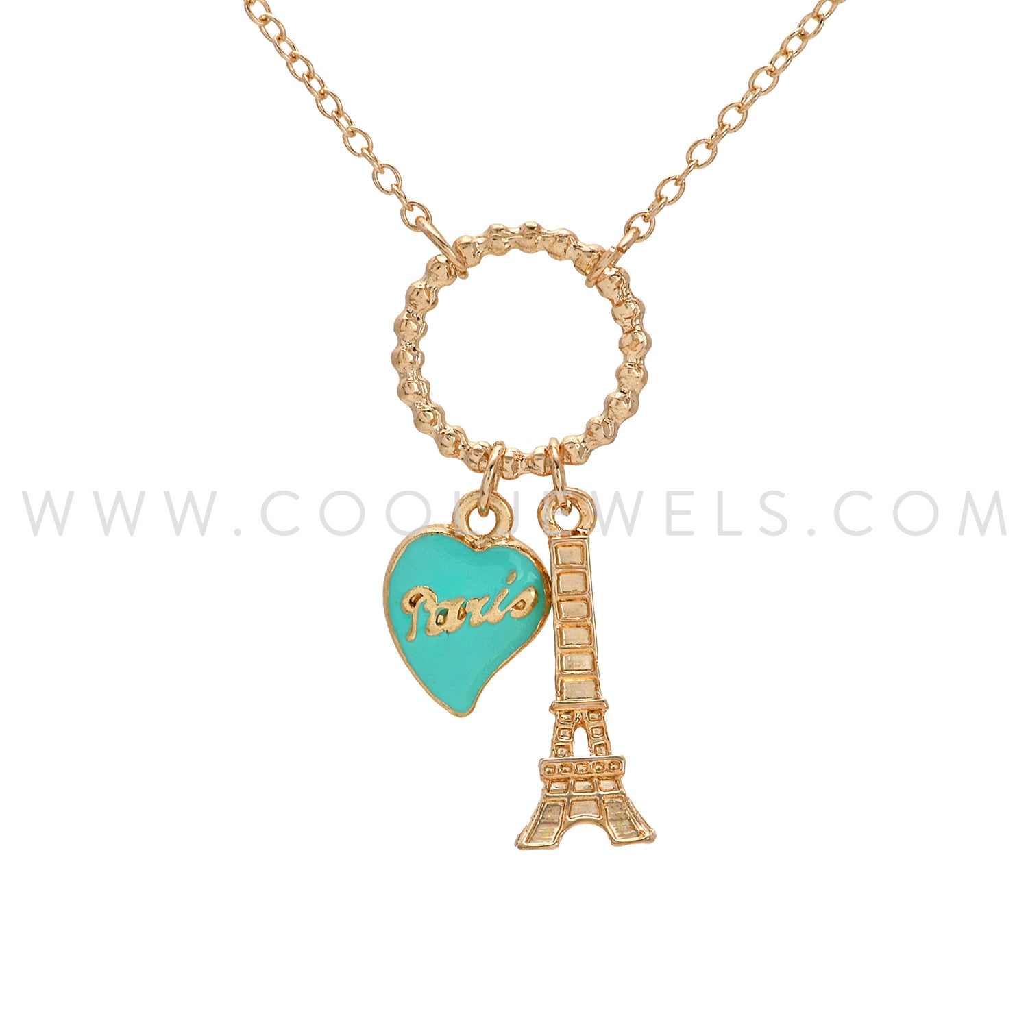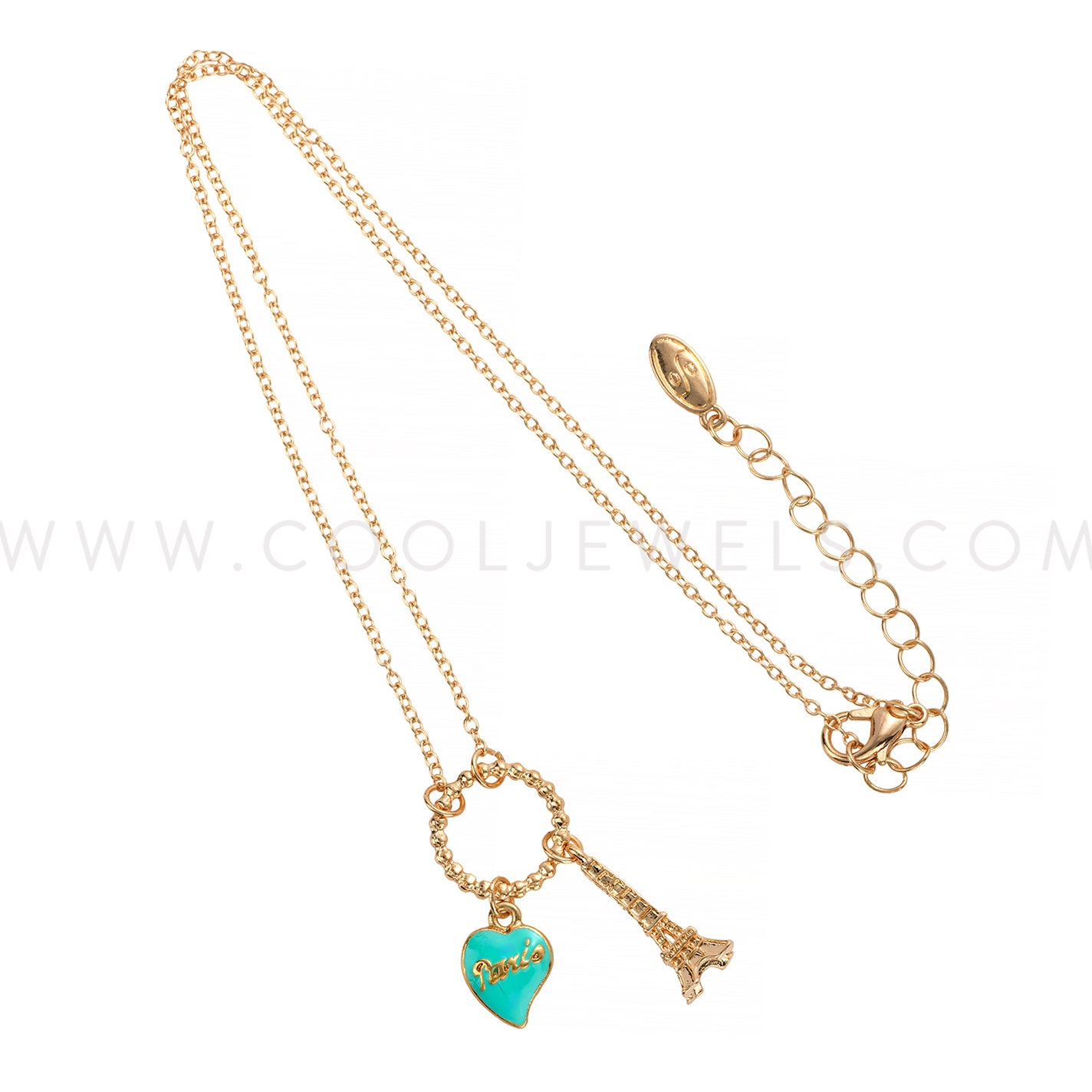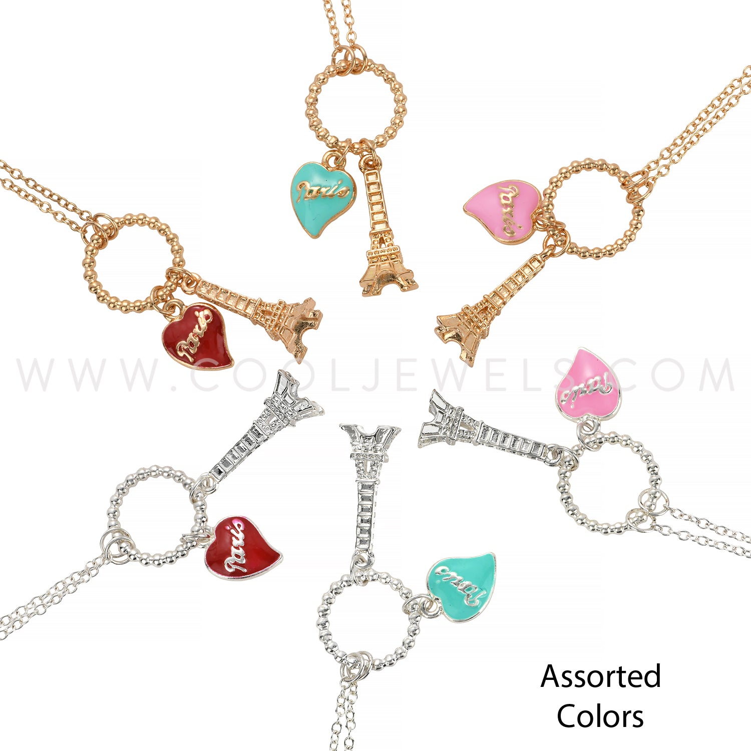 LINK CHAIN NECKLACE WITH EIFFEL TOWER & HEART-SHAPED "PARIS" CHARM - ASSORTED