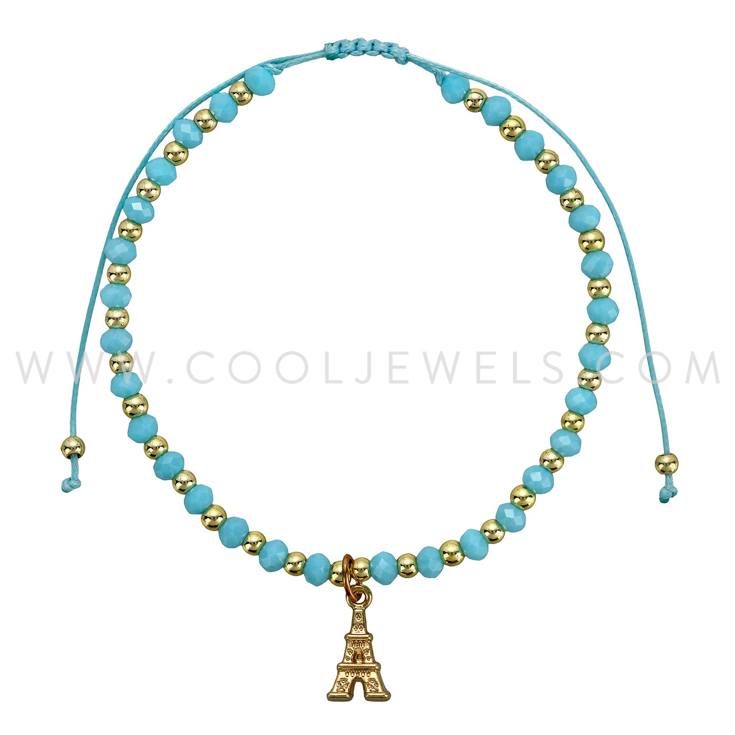 COLORED BEADED SLIDER ANKLET WITH EIFFEL TOWER