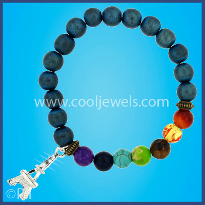Rhinestone Eiffel Tower Blue & Colored Beaded Stretch Bracelet