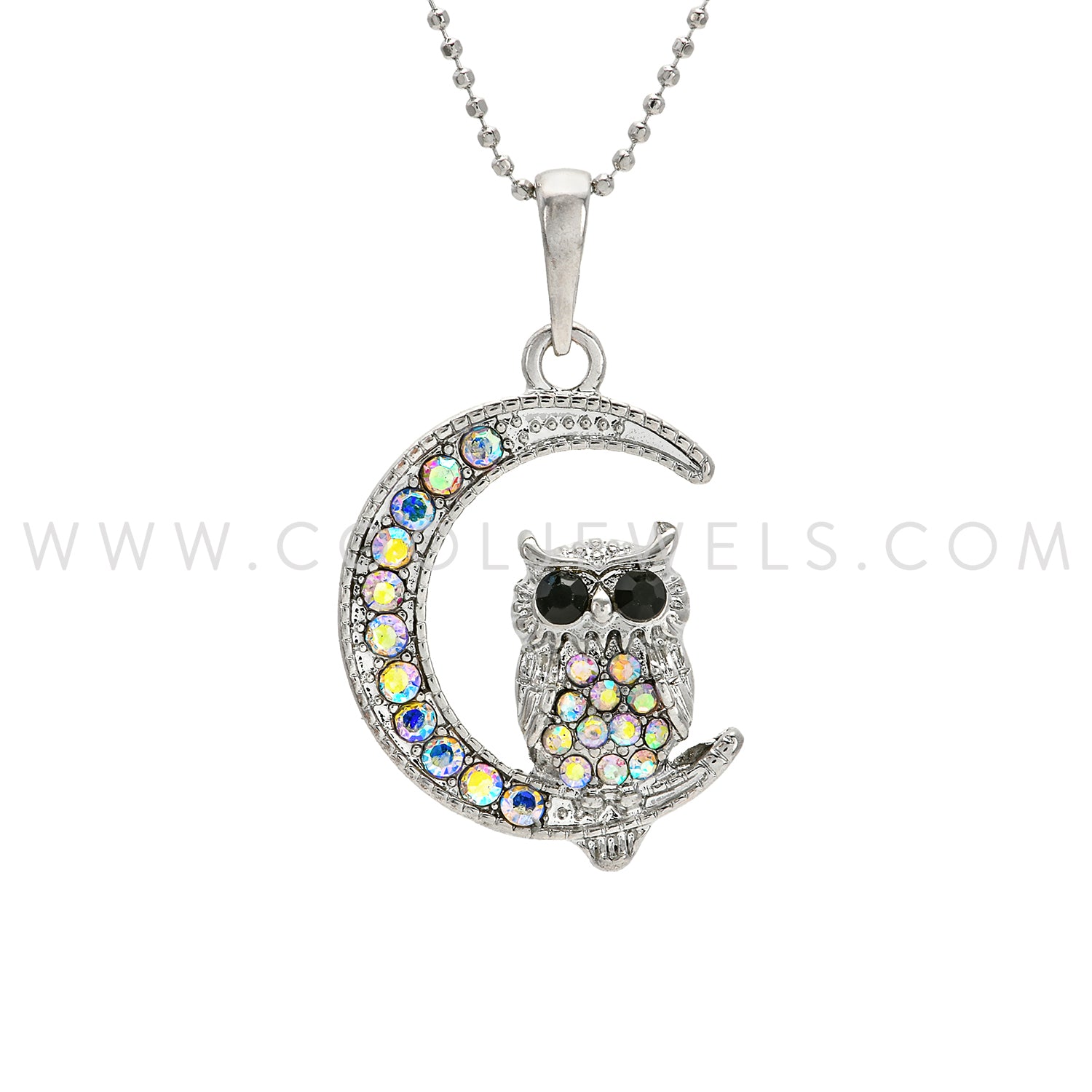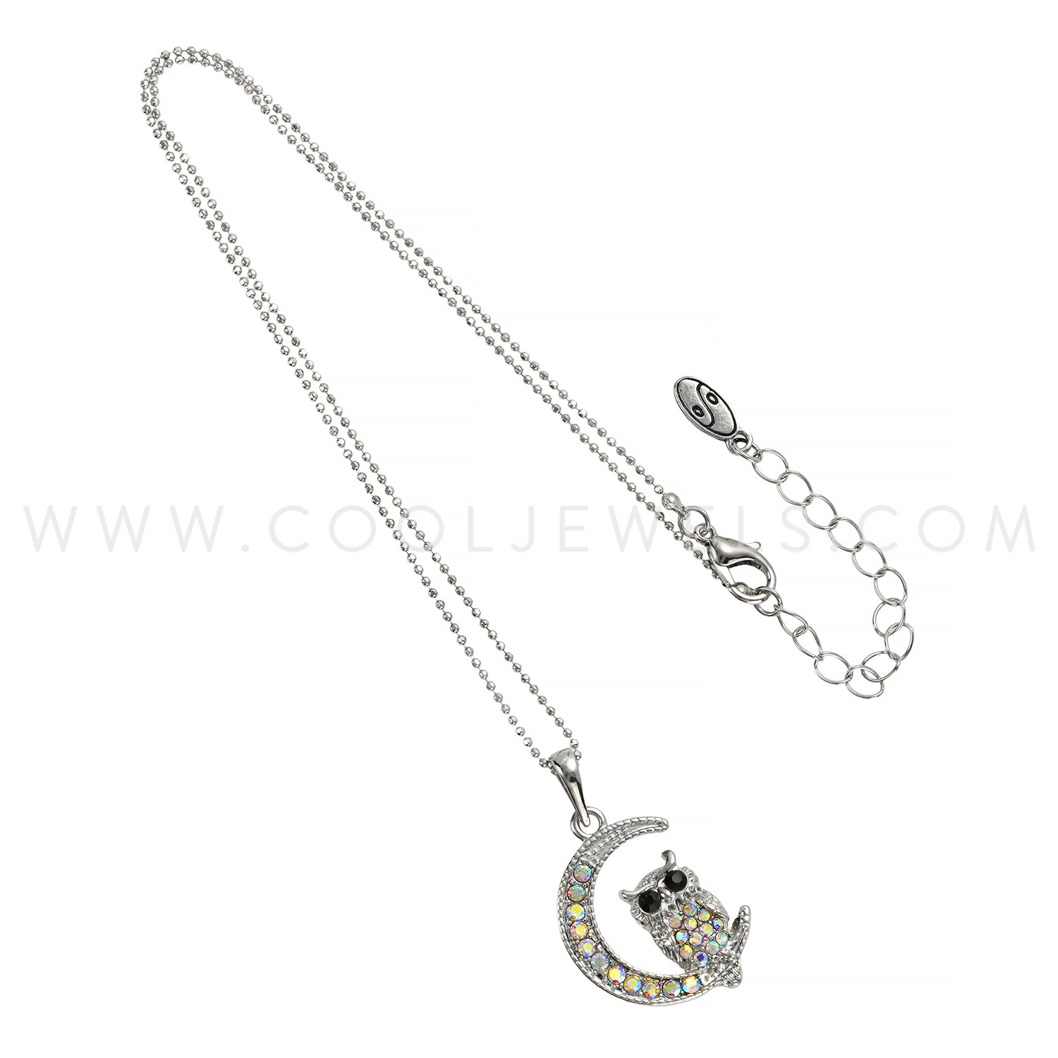 SILVER BALL CHAIN NECKLACE WITH RHINESTONE MOON & OWL - ASSORTED