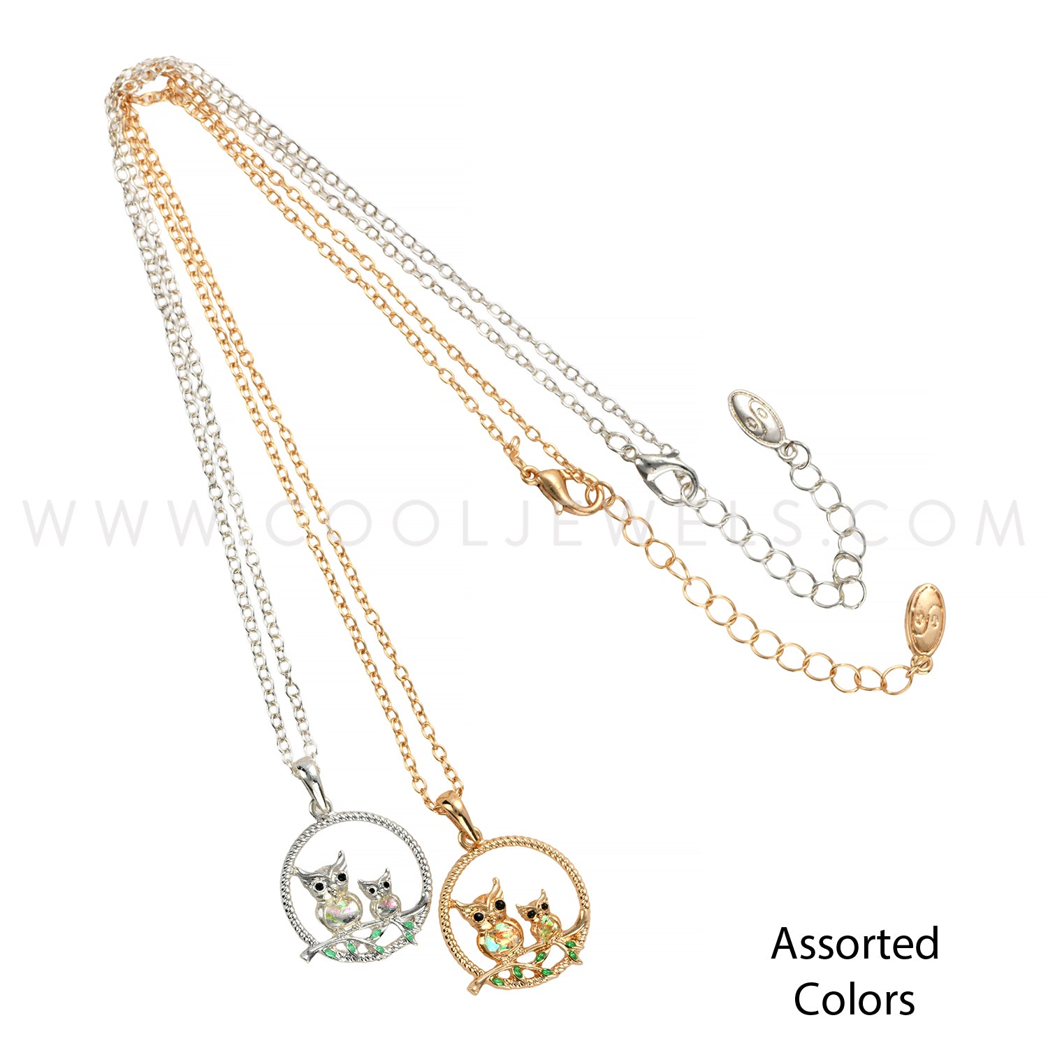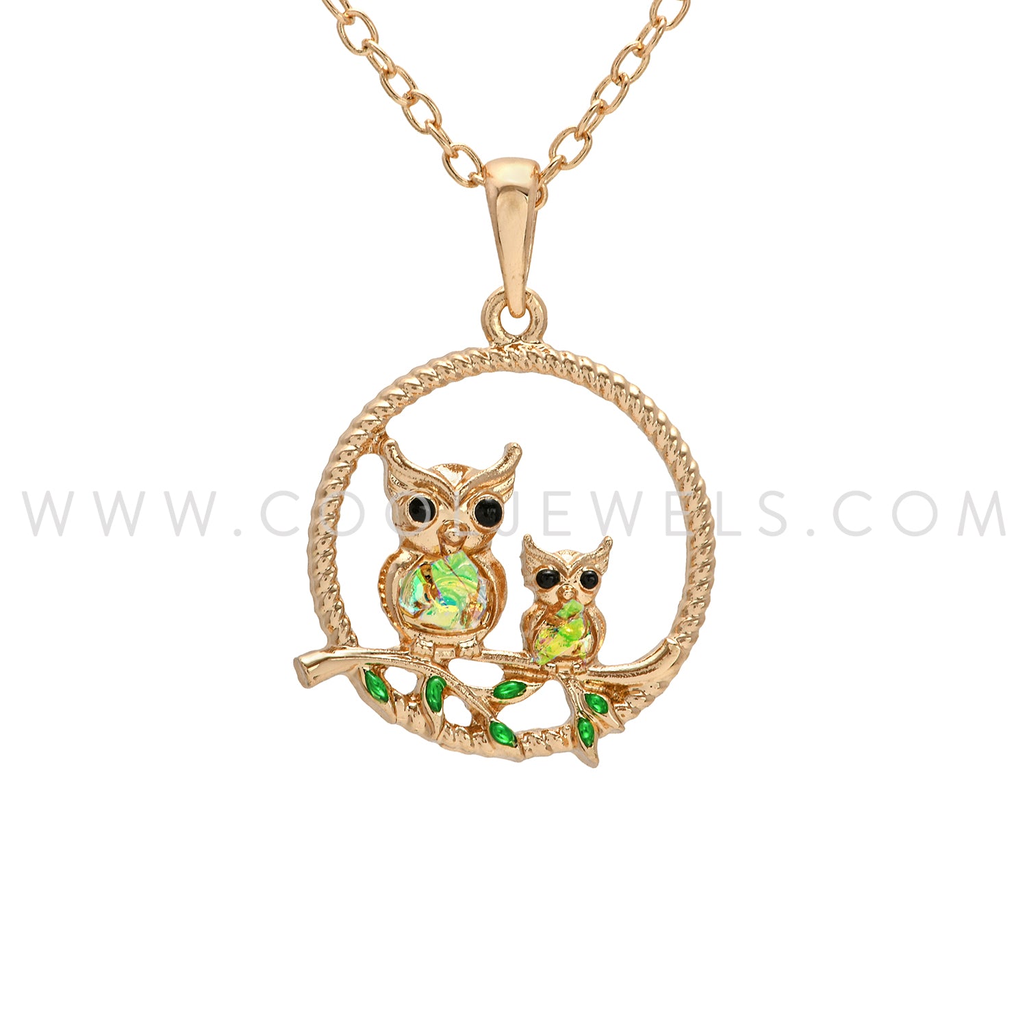 LINK CHAIN NECKLACE WITH ROUND OWL & BRANCH PENDANT