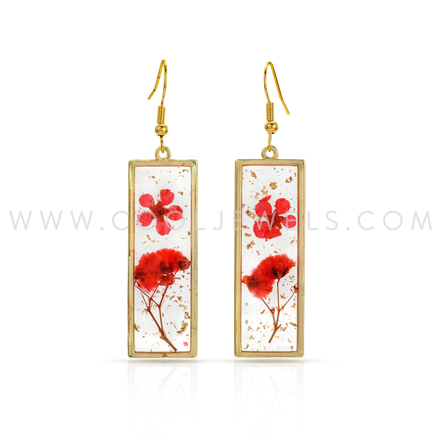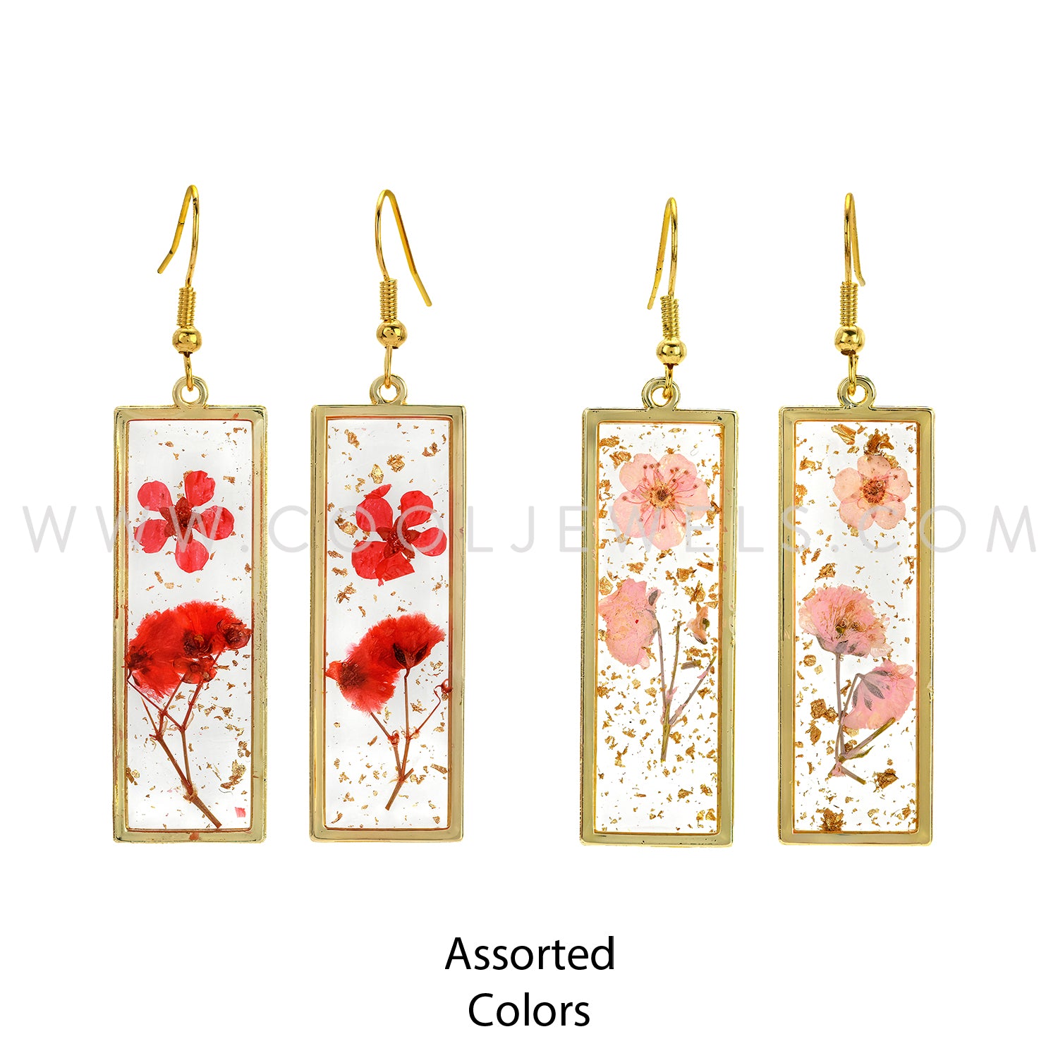FISH HOOK EARRINGS WITH RECTANGLE DRIED FLOWER PENDANTS - ASSORTED