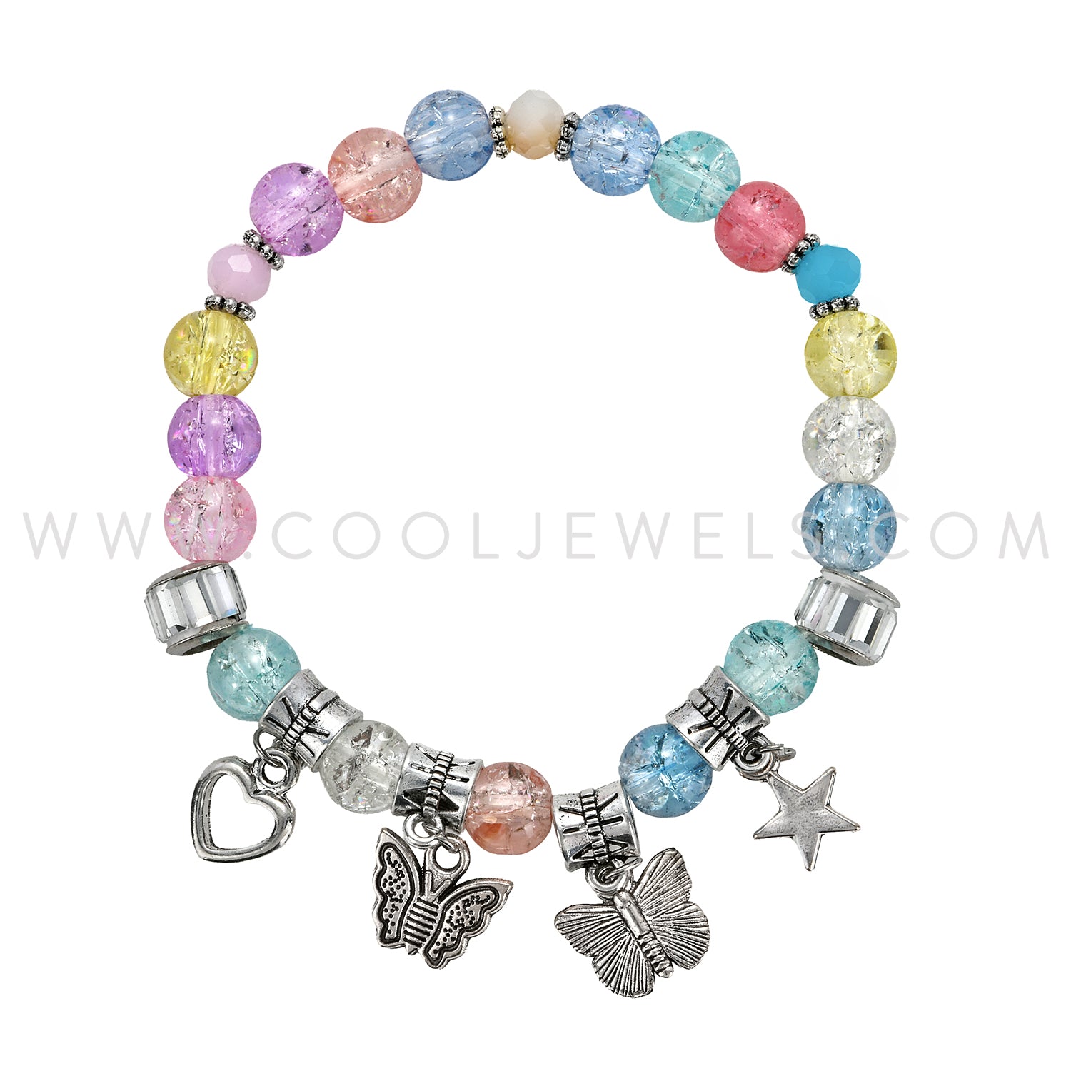 STRETCH BRACELET WITH PASTEL BEADS & SILVER CHARMS