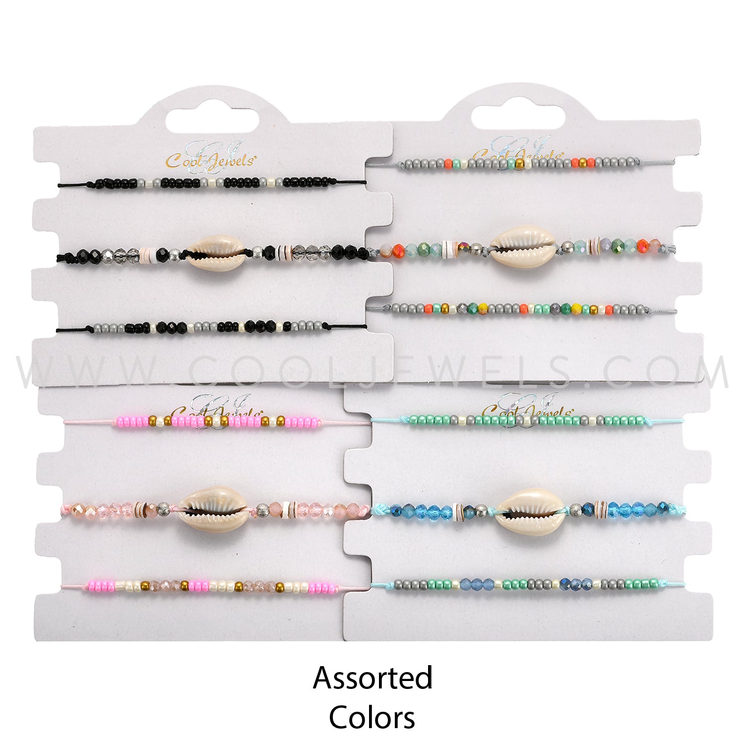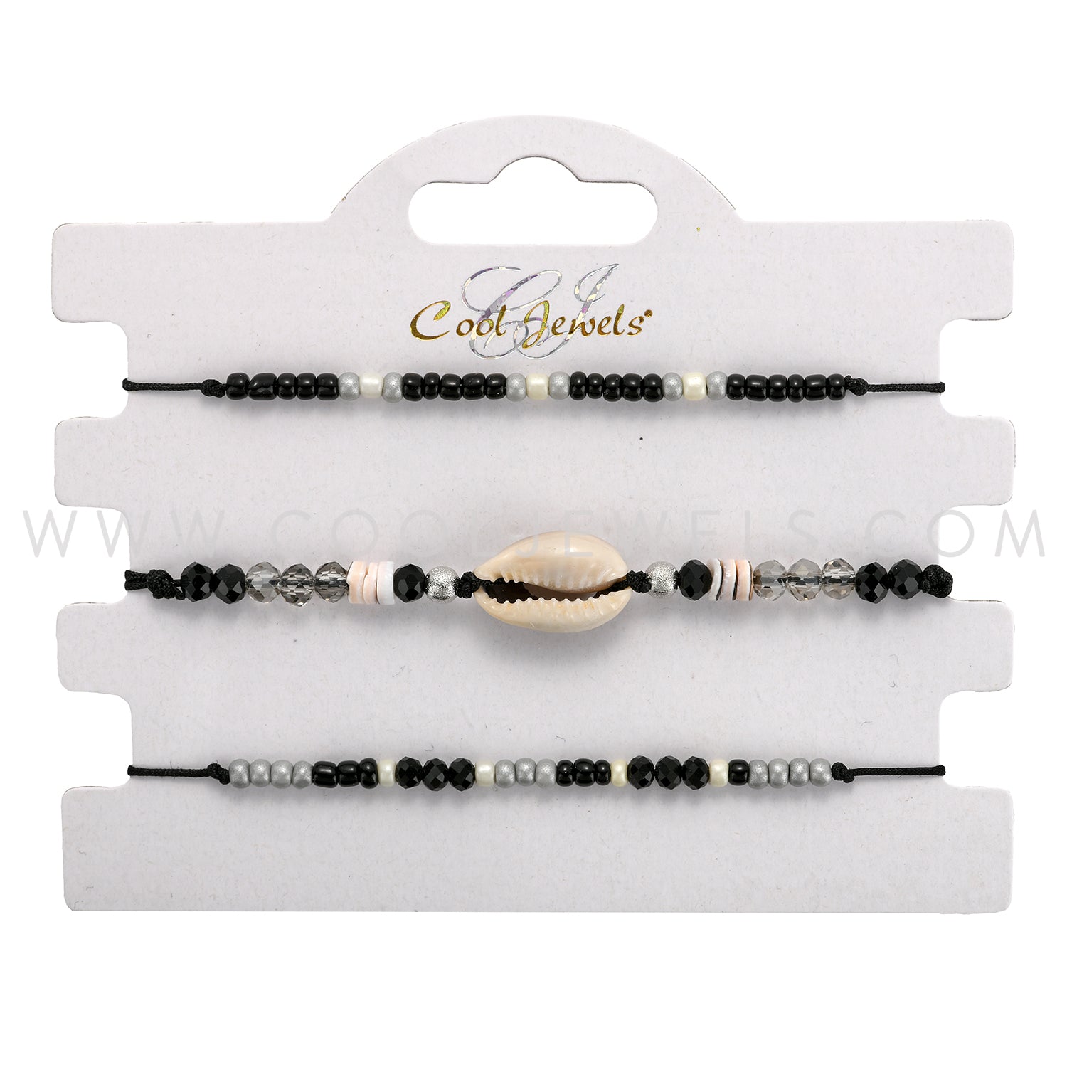 (SET OF 3) STRING BRACELET WITH BEADS & COWRIE SHELL