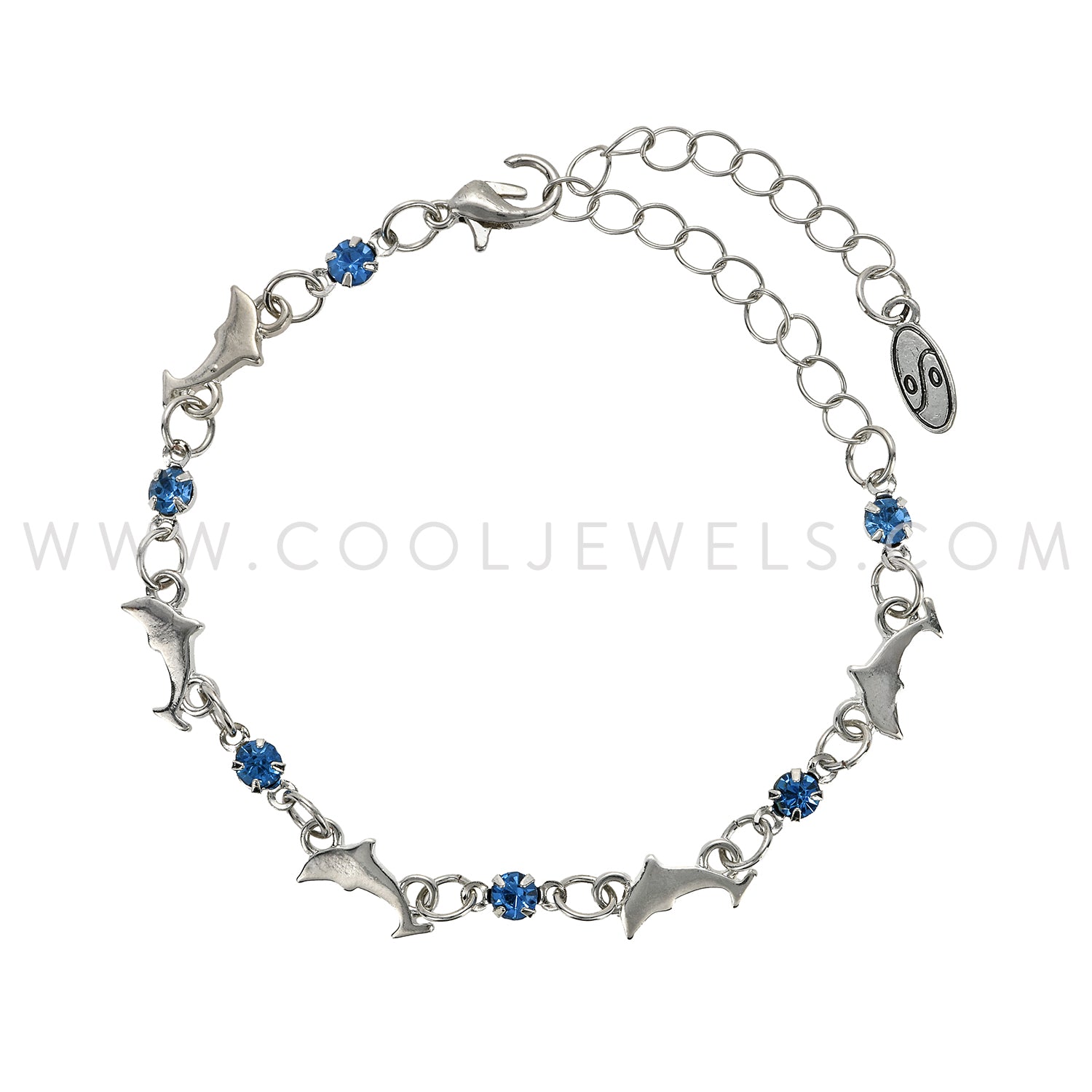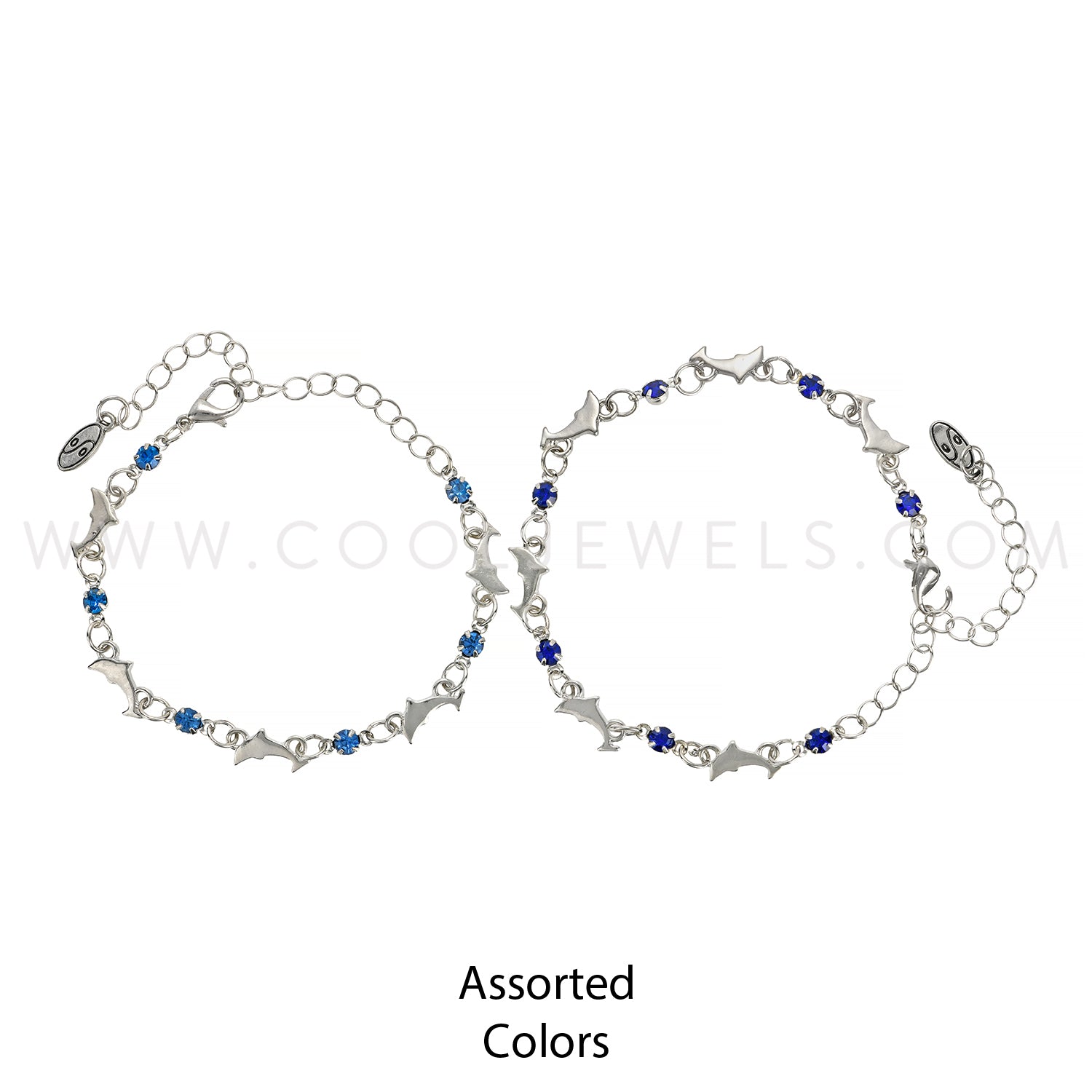 SILVER ANKLET WITH DOLPHINS & COLORED RHINESTONES