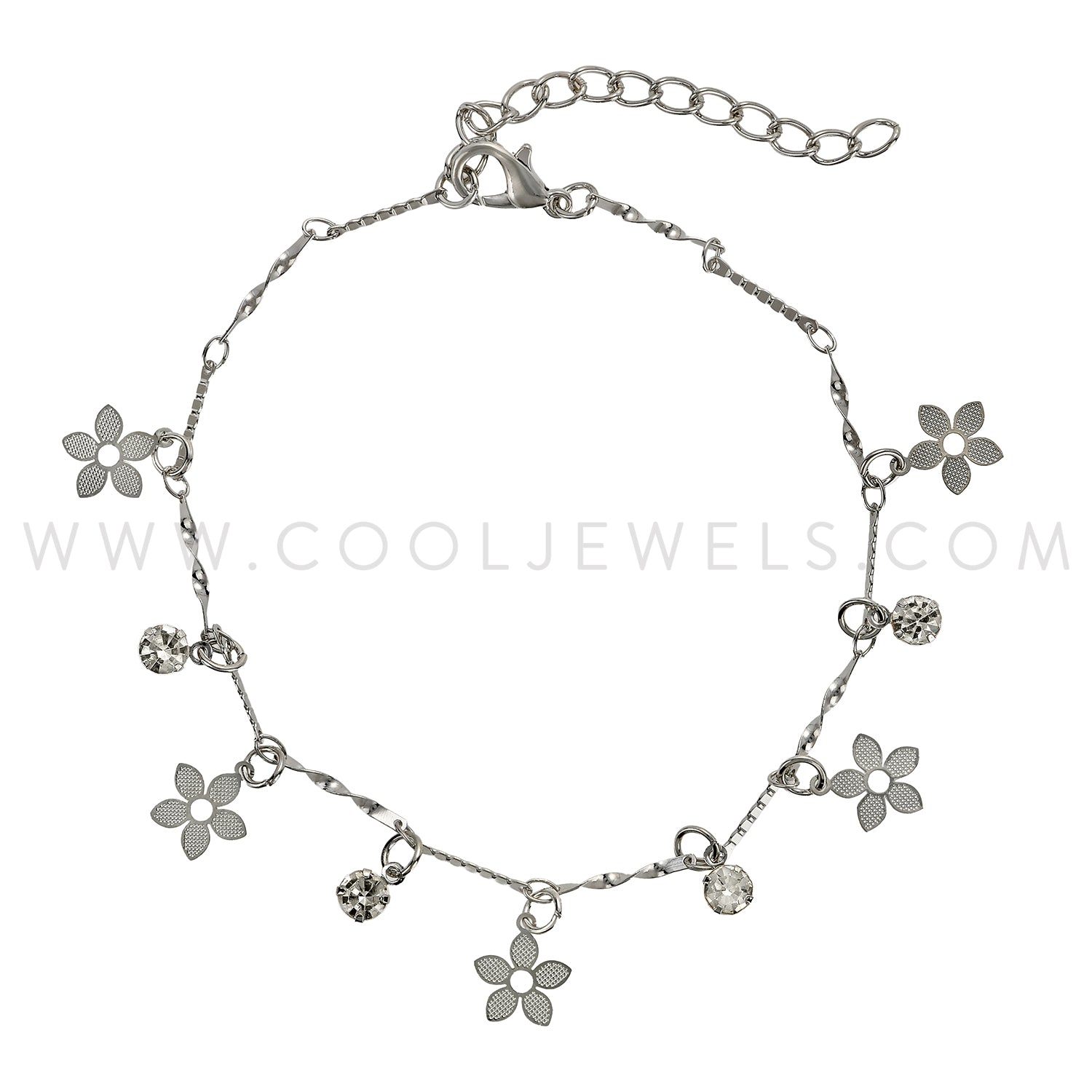 These Silver Rhinestone Flowers Anklets feature silver rhinestone flowers.
