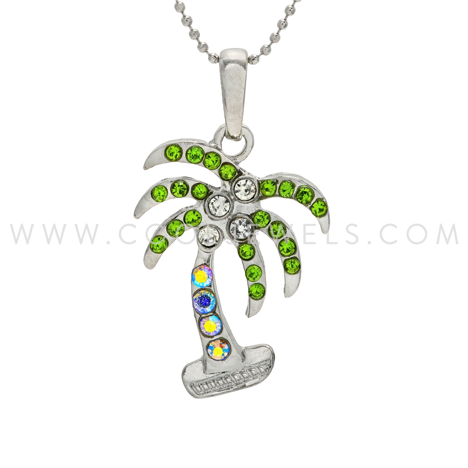 SILVER BALL CHAIN NECKLACE WITH RHINESTONE PALM TREE