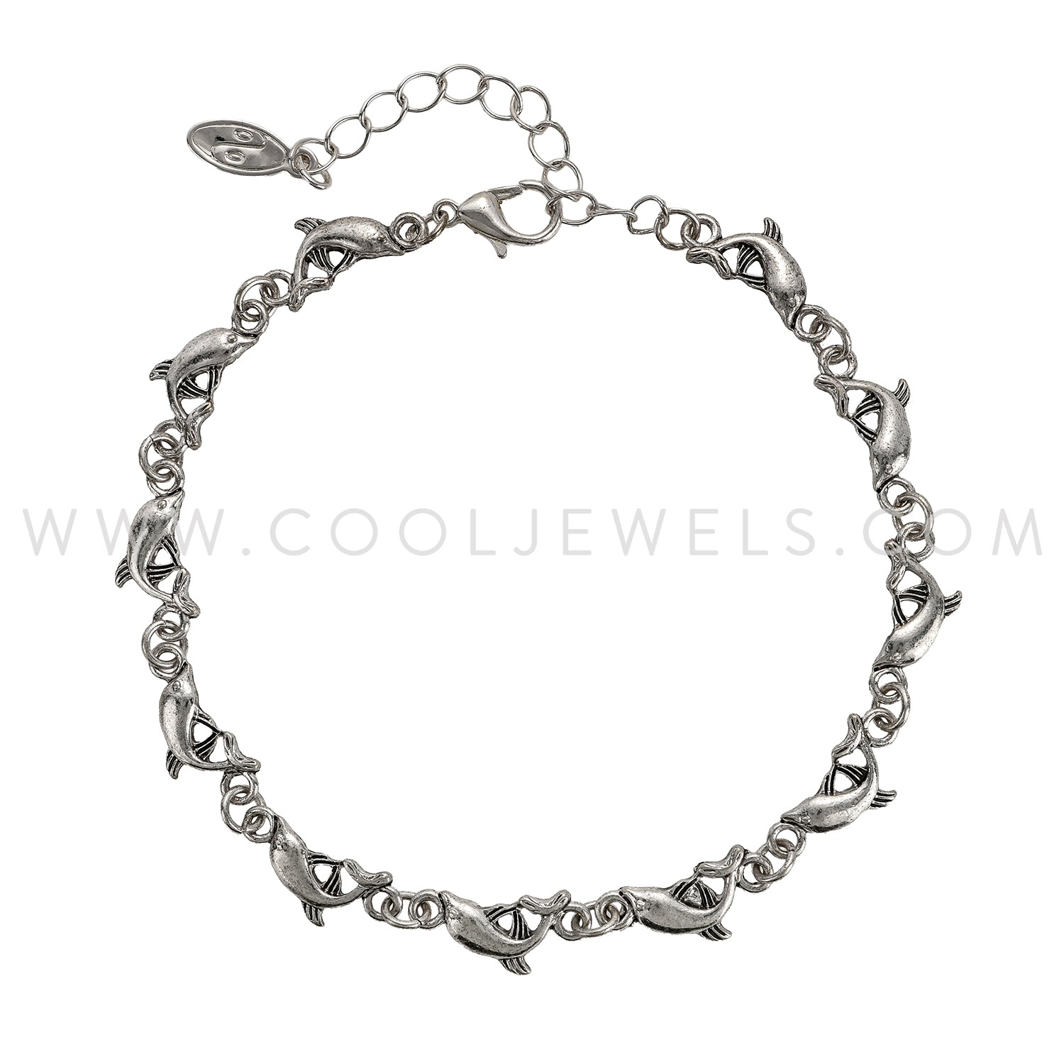 These Silver Dolphin Anklets feature a silver chain accented with silver dolphins.