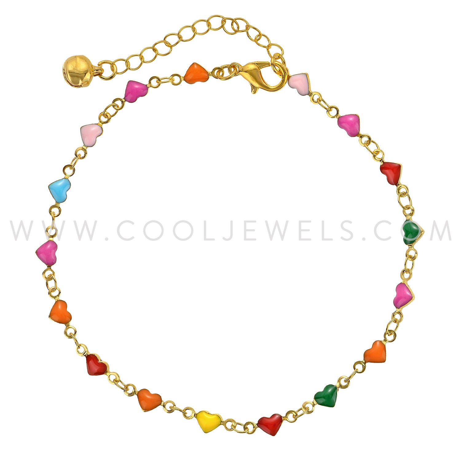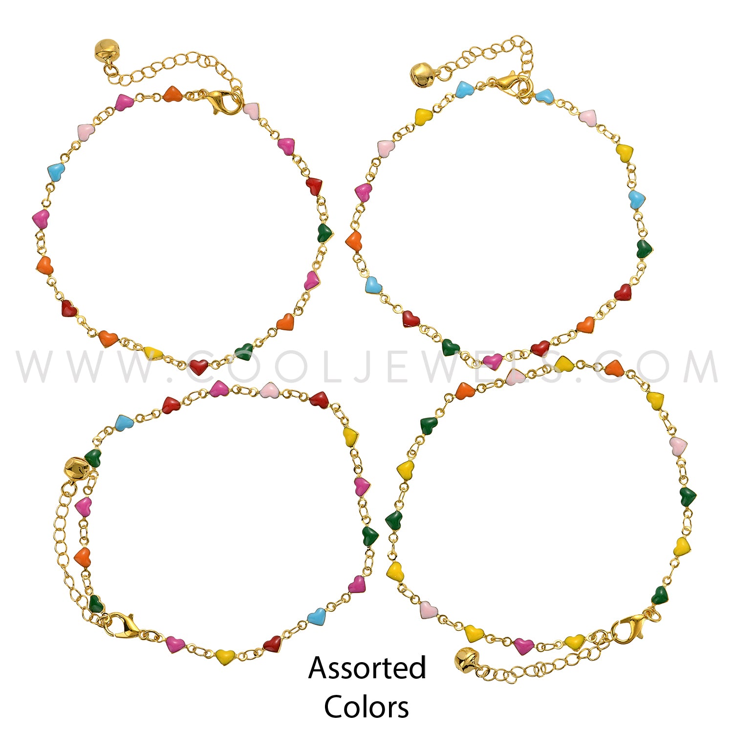GOLD CHAIN ANKLET WITH MULTI-COLORED HEARTS - ASSORTED